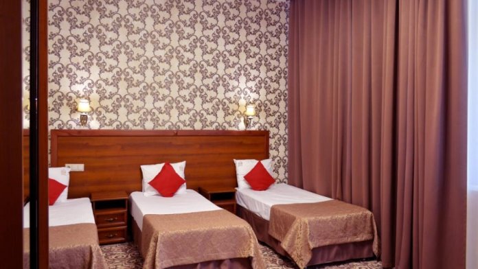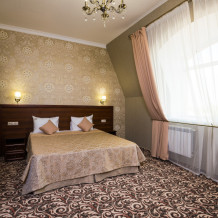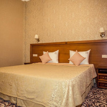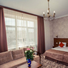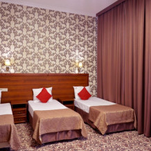 В номере: 1 двуспальная и 1 односпальная кровати или 3 односпальные кровати. Большой номер, в котором могут комфортно разместиться три гостя.
