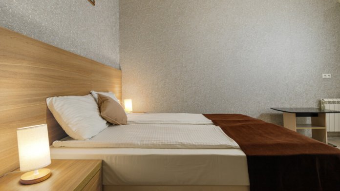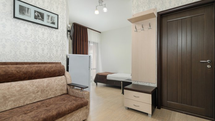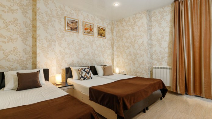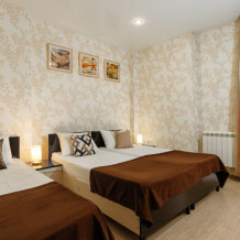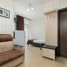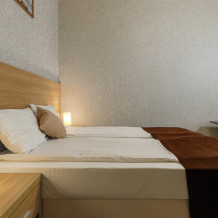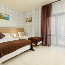 Комфортный 3-местный номер с двумя раздельными кроватями и дополнительным местом (диван-софа для одного гостя). Оснащён сплит-системой , электрическим чайником и спутниковым TV. Подойдет для размещения трёх человек. Датчик угарного газа обеспечивает безопасность. Напольное покрытие –ламинат . В ванной комнате установлена ванна и есть все необходимые туалетно-косметические принадлежности, фен и полотенца. С балкона открывается вид на город.