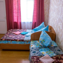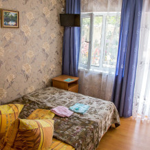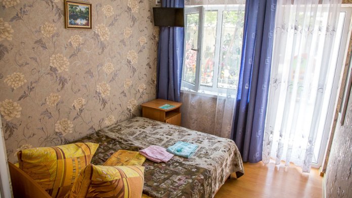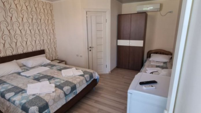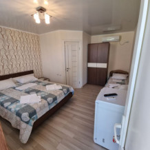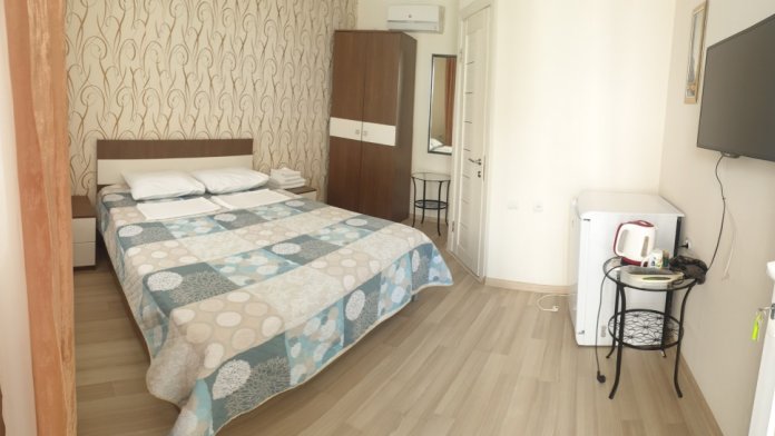 Номера для размещения 2-3-4-5 гостей. Каждый номер оборудован необходимой мебелью: двуспальной кроватью, шкафом, прикроватными тумбочками. В номере: телевизор плазма, санузел, душ, сплит-система, холодильник, умывальник.