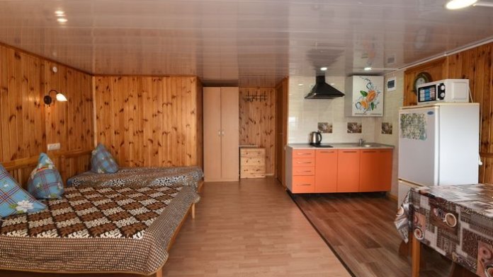 Двухкомнатная квартира и двухкомнатные апартаменты - представляет собой самостоятельную часть дома с отдельным входом состоит из двух комнат, кухни, санузла, предназначена для проживания до 5 человек, возможно размещение дополнительного места, расположена на участке № 2.