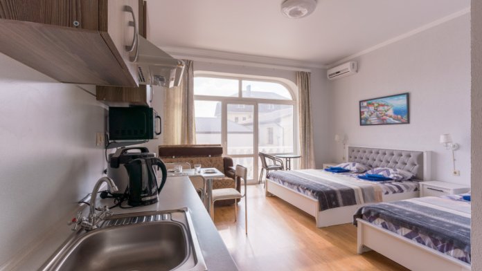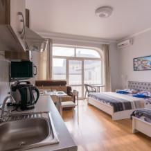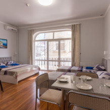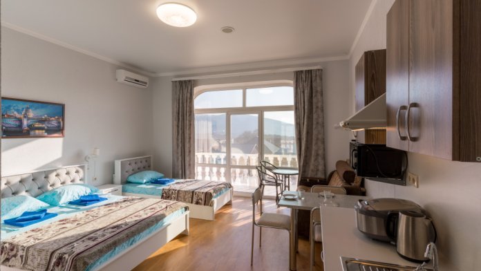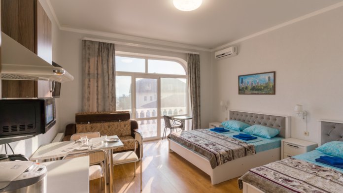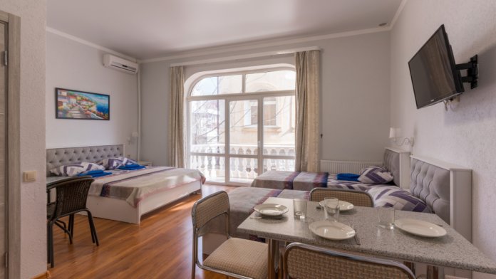 Гостевой дом «Флагман» открыт в июне 2016г. Мы предлагаем большие и светлые номера , оборудованные сплит - системами , имеющие балконы и панорамные окна. В всех номерах есть кухонный уголок оборудованный Вытяжка,Микроволновка,Мультиварка,Чайник,Обеденный стол посуда.