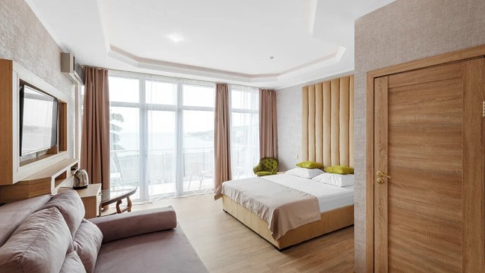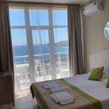 Расположенный всего в 150 метрах от моря, наш отель предлагает уникальное сочетание комфорта, уединения и природной красоты. Из панорамных балконов открываются захватывающие виды на бескрайнее море и легендарную гору Аю‑Даг и Медведь‑гору — пейзаж, который вдохновляет и дарит ощущение безмятежности.