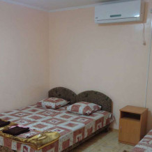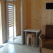 Каждый номер вместимостью 4+1 человека. Возможен вариант аренды всего корпуса целиком, как отдельно стоящего дома под ключ. Во дворе: парковка, беседка с мангалом, зеленая территория с фруктовым садом.