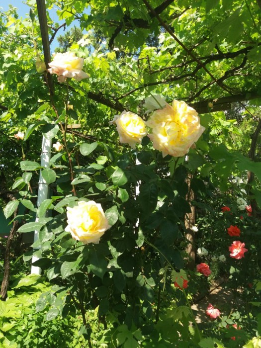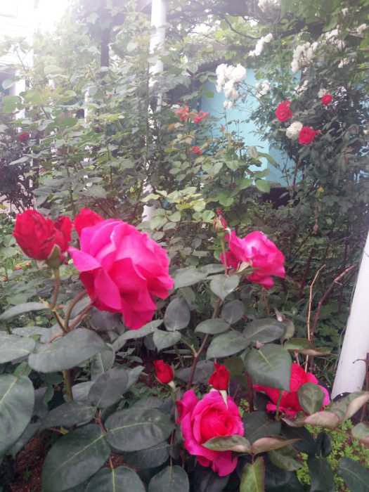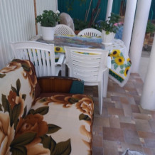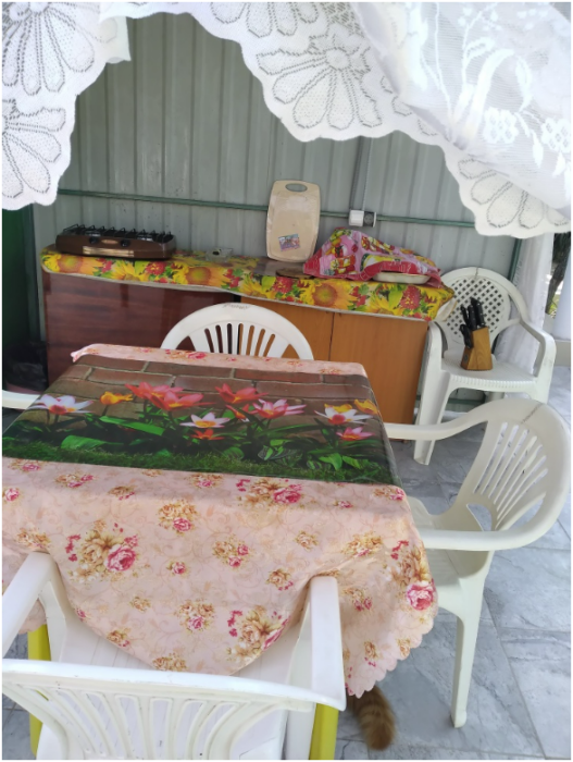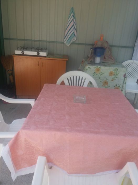 На веранде - холодильник, эл.чайник, обеденный стол.