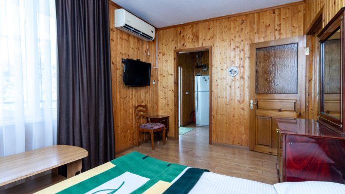 Для размещения предлагаются 2-, 3-местные номера Эконом и Стандарт, а также 2-комнатные 5-местные номера Люкс с кухней и без. В каждом номере есть вся необходимая мебель, телевизор, кондиционер.