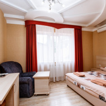 Наших шагов в гостинице семьей, вернувшись с моря, ждали приветливые лица персонала, несмотря на наше позднее прибытие (где-то около 1 ночи). Номер был безупречно чистым, с полотенцами, невероятно приятными к телу. Огромный плюс: в номере не было неприятных запахов :) Из минусов, заметили только один – усталость душевой кабины и неисправную лейку (вода льется только сверху в кабине, без возможности настроить поток из лейки). В остальном – крепкая четверка :) За улучшенный номер заплатили 2 000, что, на наш взгляд, отличная цена.