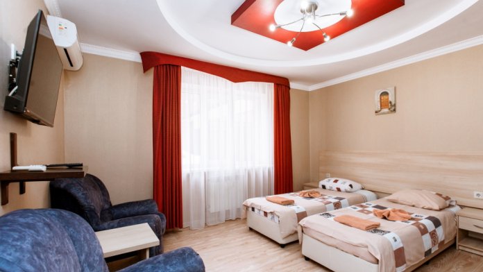 Номерной фонд представлен большим количеством категорий, которые различаются по вместительности, а также классу комфорта. Каждый гость сможет подобрать тип размещения согласно своим предпочтениям. Все номера оснащены согласно современным стандартам: в каждом номере имеется санузел с душем, телевизор с плоским экраном, холодильник, банные принадлежности.