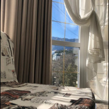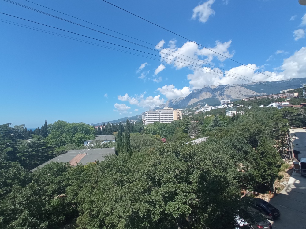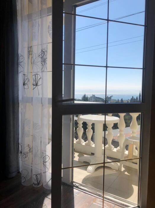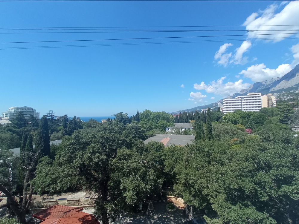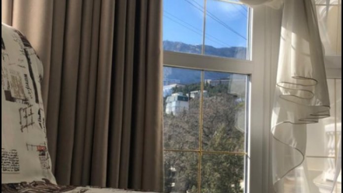 Апартаменты с панорамными окнами. Вид на горы Ай Петри и на море из-за деревьев