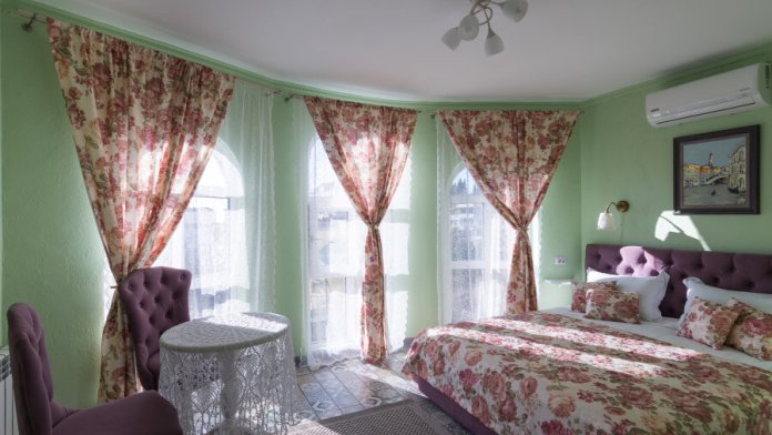 Номер делюкс - это воплощение элегантности и уюта в прованском стиле. Здесь Вас ждут роскошные кровати с мягкими матрасами, изысканная мебель из натурального дерева и яркие акценты в декоре. Большие окна пропускают много света, а живописные виды на сад и окрестности создают атмосферу безмятежности. В Вашем распоряжении современная техника и все необходимые удобства для комфортного отдыха. Погрузитесь в мир роскоши и уюта в нашем номере делюкс!