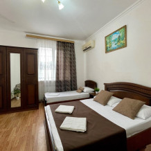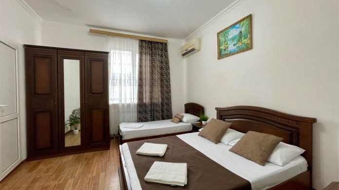Это тихое и комфортное место с кафе и садом. В гостевом доме есть бесплатная стоянка, общая кухня, рядом магазины, аптеки. Вы можете отдохнуть в Сочи с детьми по доступной цене, посетить аквапарк Аквалоо, который находится в 10 минутах от нашего дома.