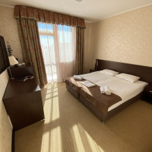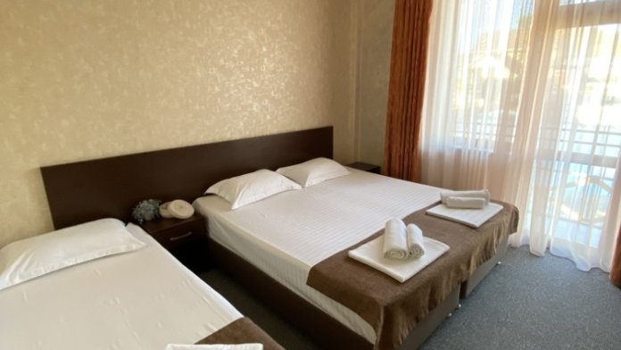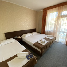Удобный номер на троих. В номере: 2-спальная кровать и односпальная кровать, заправленные чистым постельным бельем. Есть все, для Вашего удобства: холодильник, телевизор, письменный стол, 2 стула, 2 тумбочки, кондиционер, быстрый интернет, шкаф для одежды, фен, балкон. Номер с удобствами, каждому гостю выдается гигиенический набор и 3 полотенца.