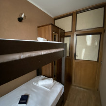 Небольшой номер площадью 8 кв метров. В номере удобная 2-х ярусная кровать , заправленная чистым постельным бельем. Есть все для вашего удобства: , телевизор, тумбочка, шкаф для одежды, быстрый интернет. Удобства (туалет, душ) на территории гостевого дома, гигиенический набор и по 3 полотенца для каждого гостя