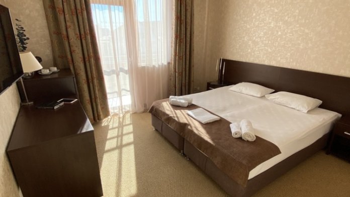 В номере 2-спальная кровать, заправленная чистым постельным бельем. Для Вашего удобства: холодильник, телевизор, письменный стол, чайник электрический, кондиционер, необходимая мебель, средства для чистки обуви и одежды. Есть балкон с видом на город. В номере все удобства, каждому гостю предоставляется гигиенический набор, полотенца.