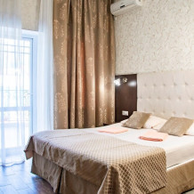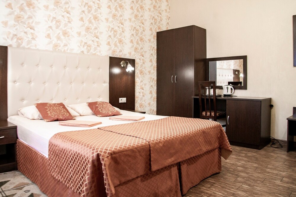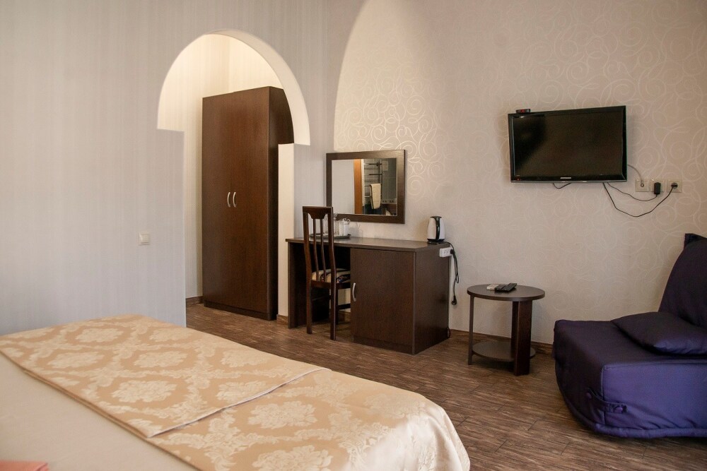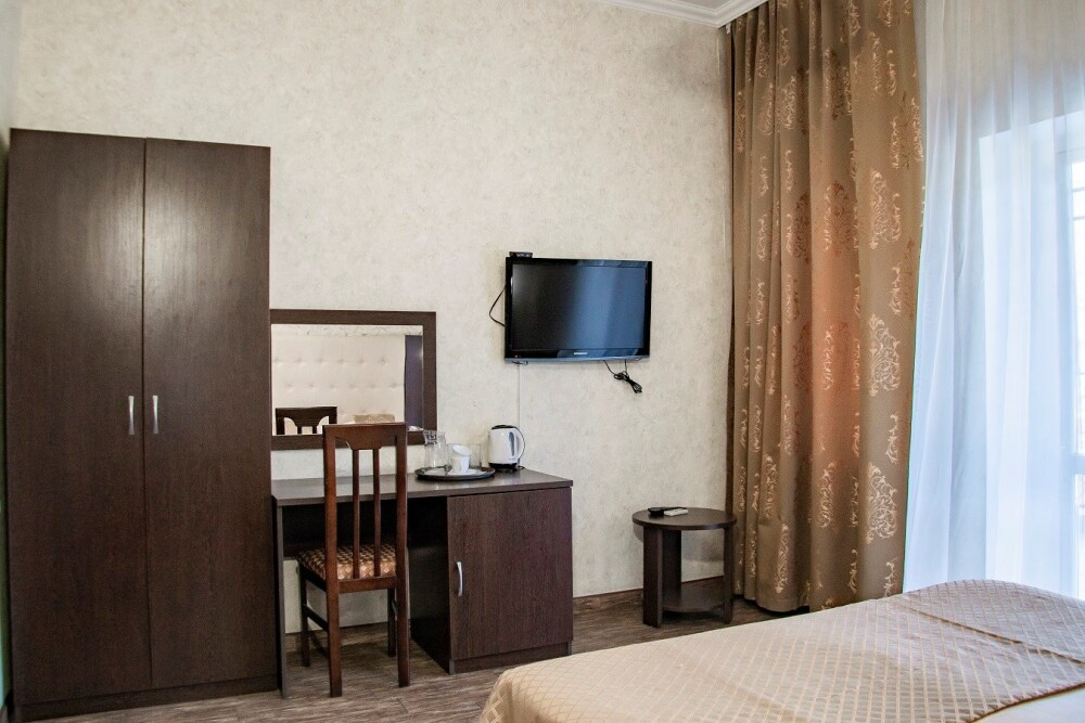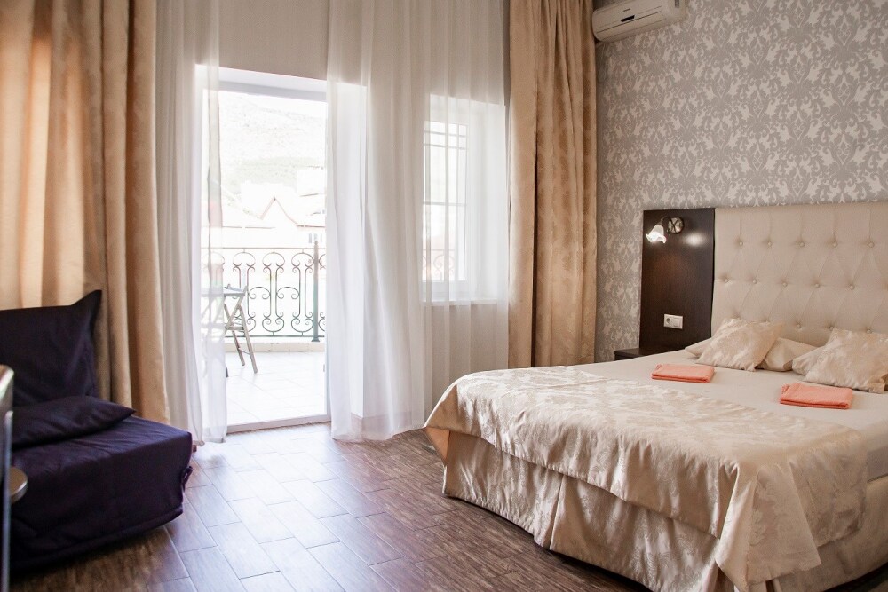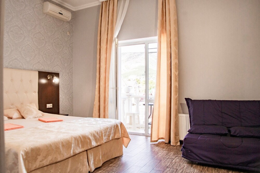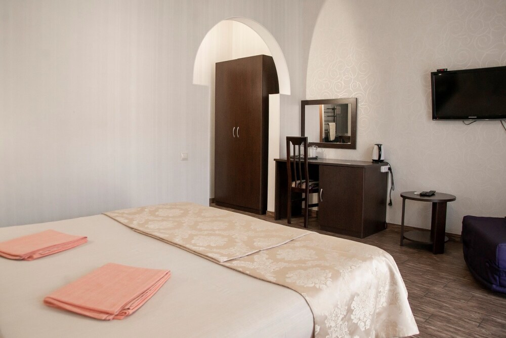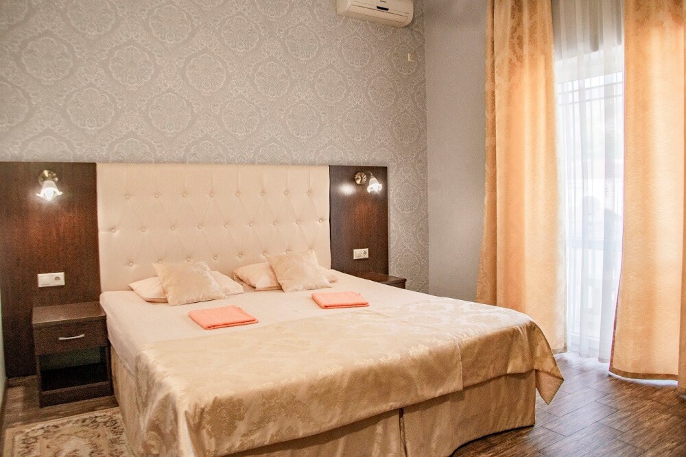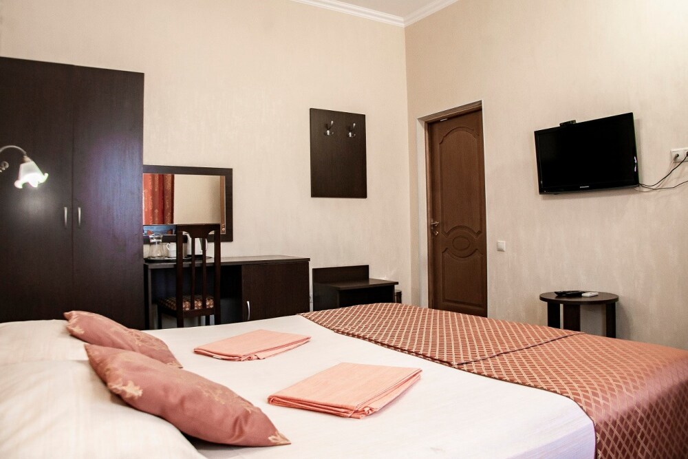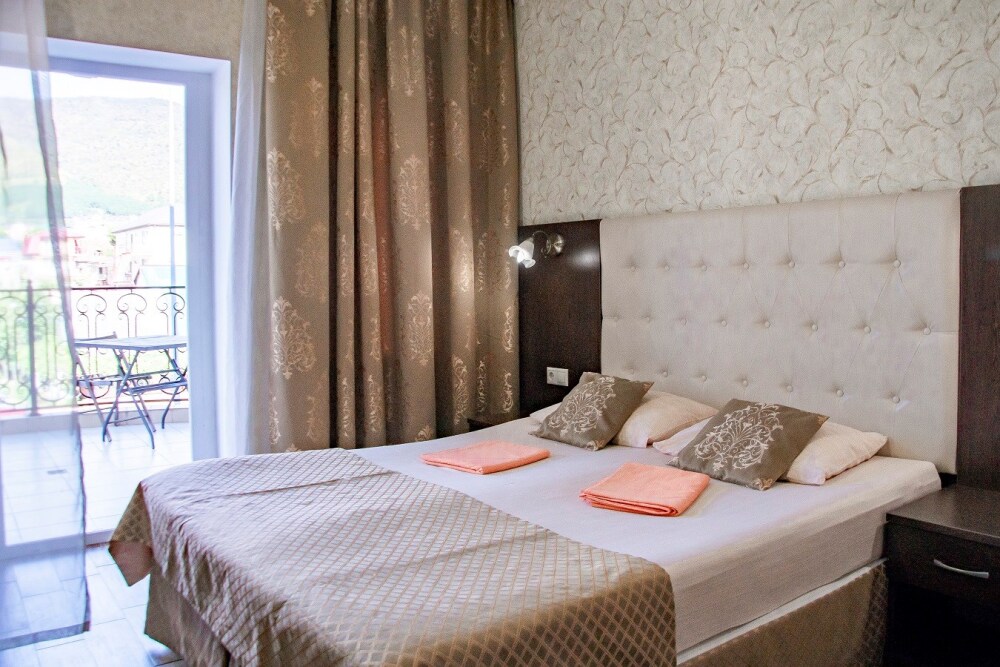 К услугам гостей 13 номеров категории «комфорт«с видом на горы или панорамным видом на Геленджикскую бухту. Во всех номерах есть холодильник, телевизор, чайник, письменный стол, собственная ванная комната. В некоторых номерах есть балкон.