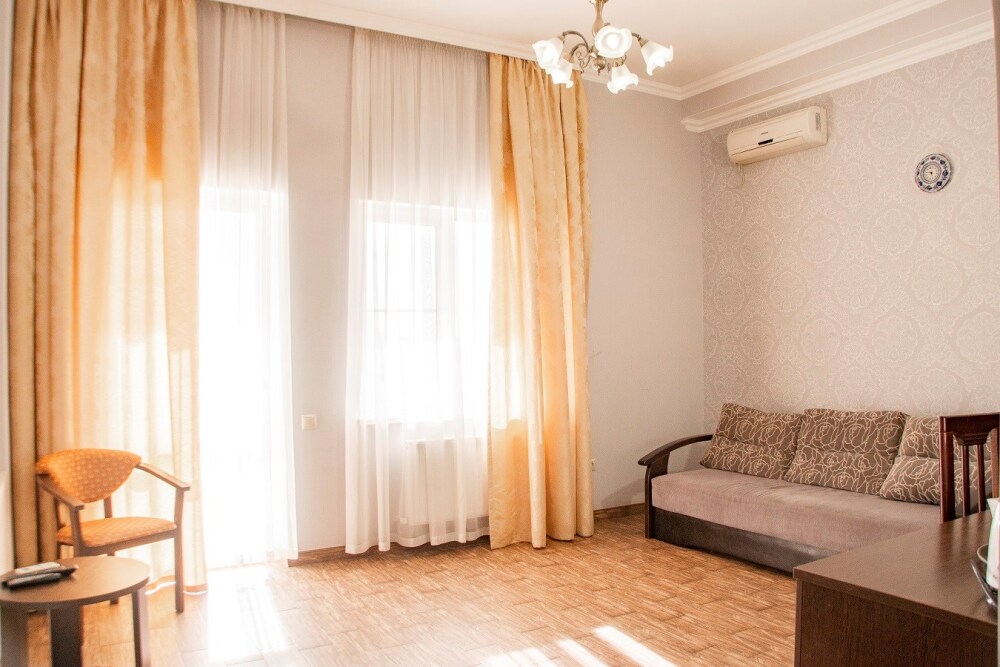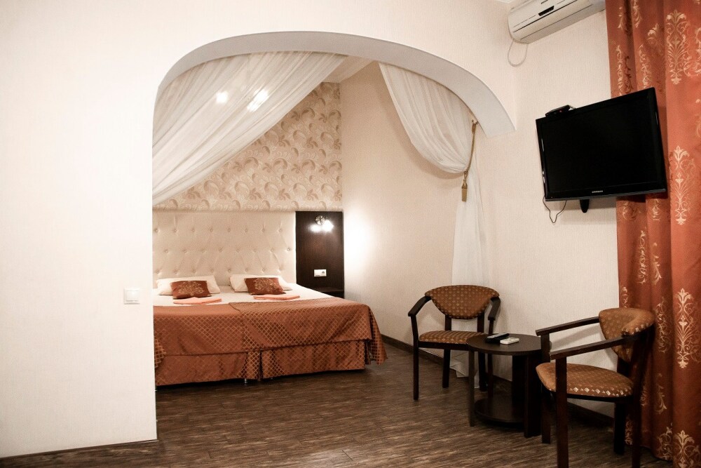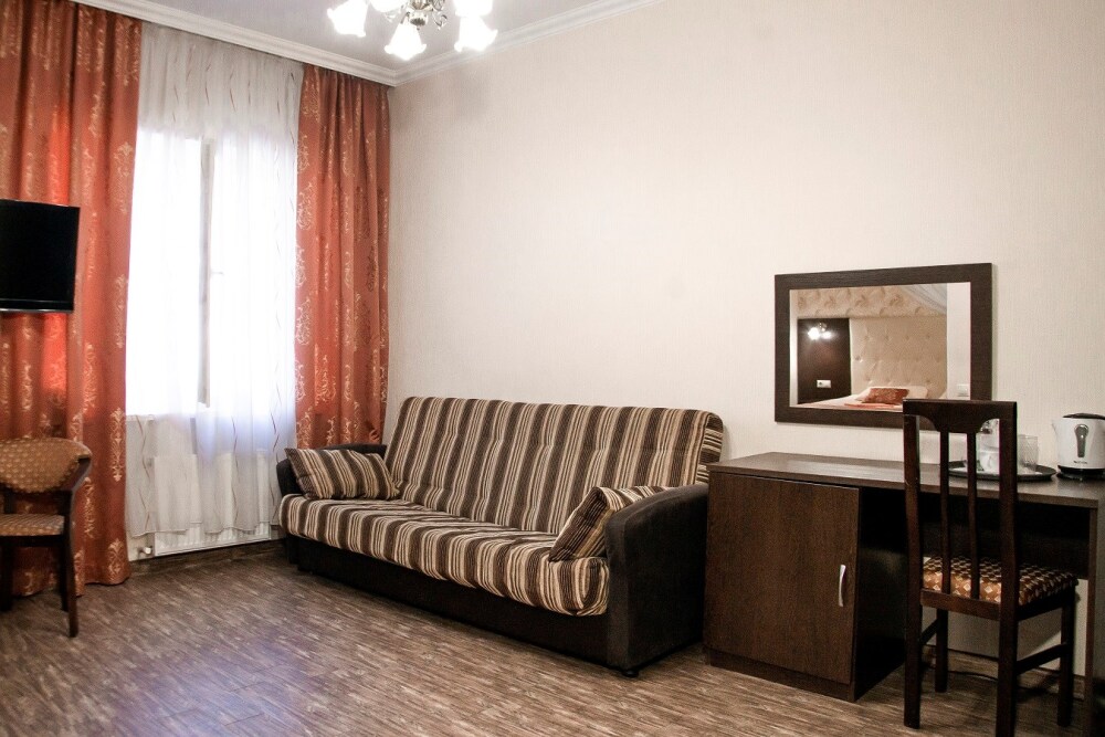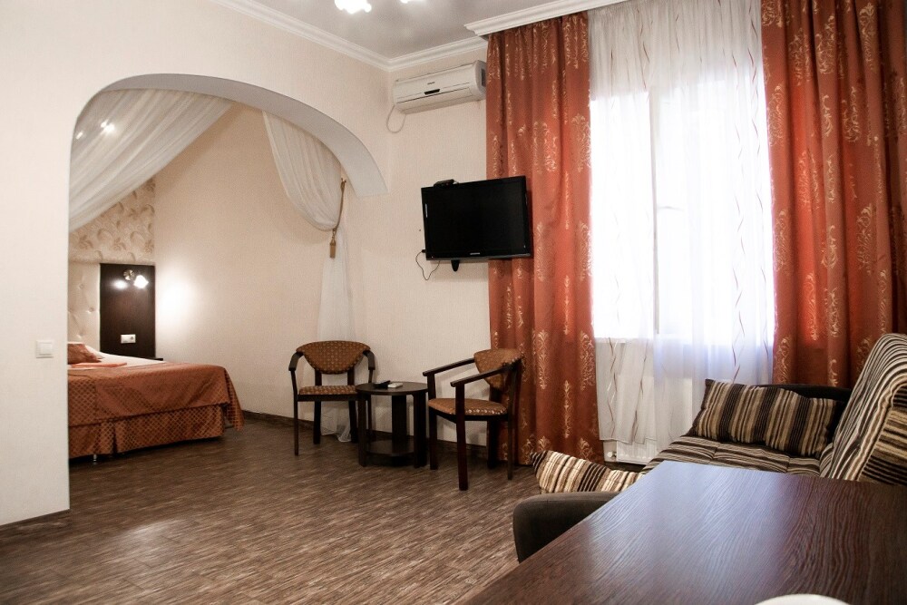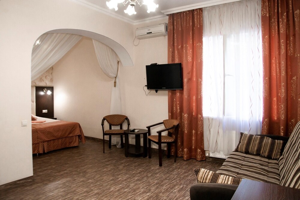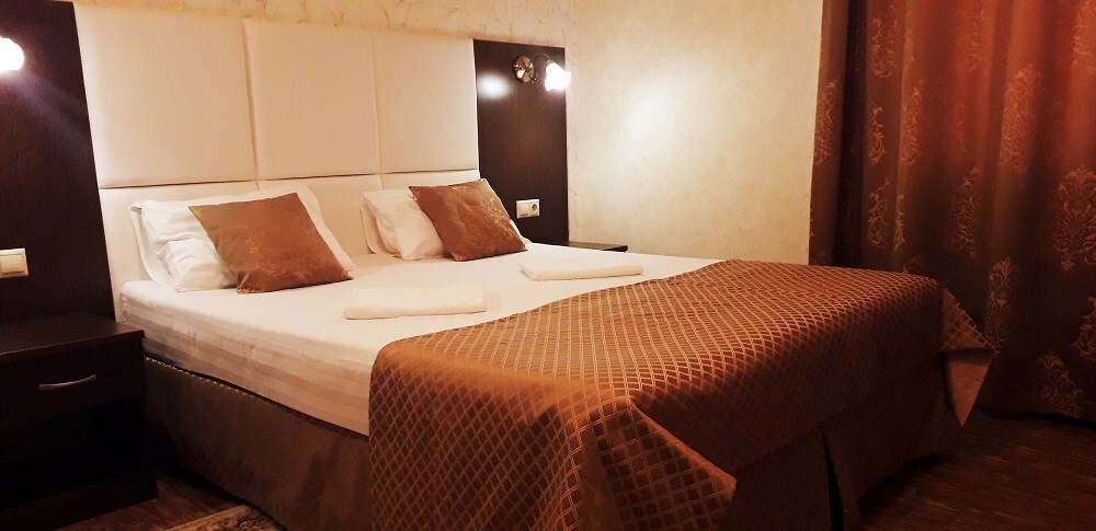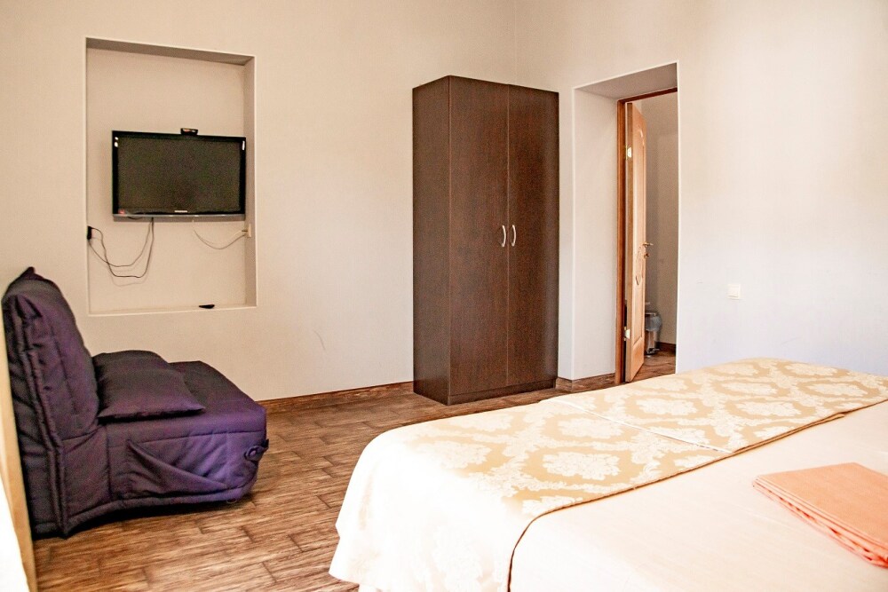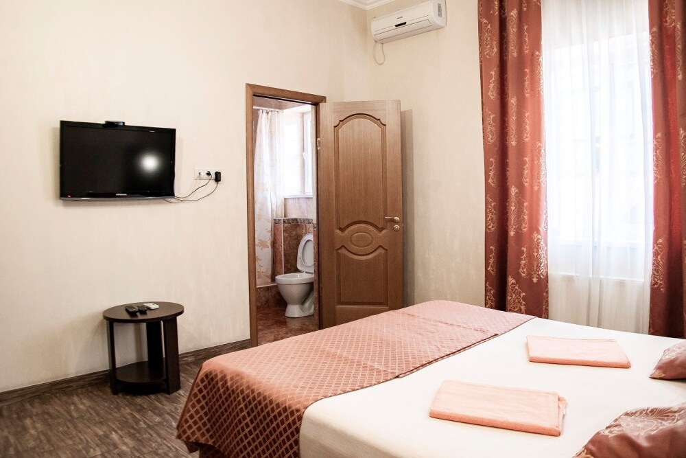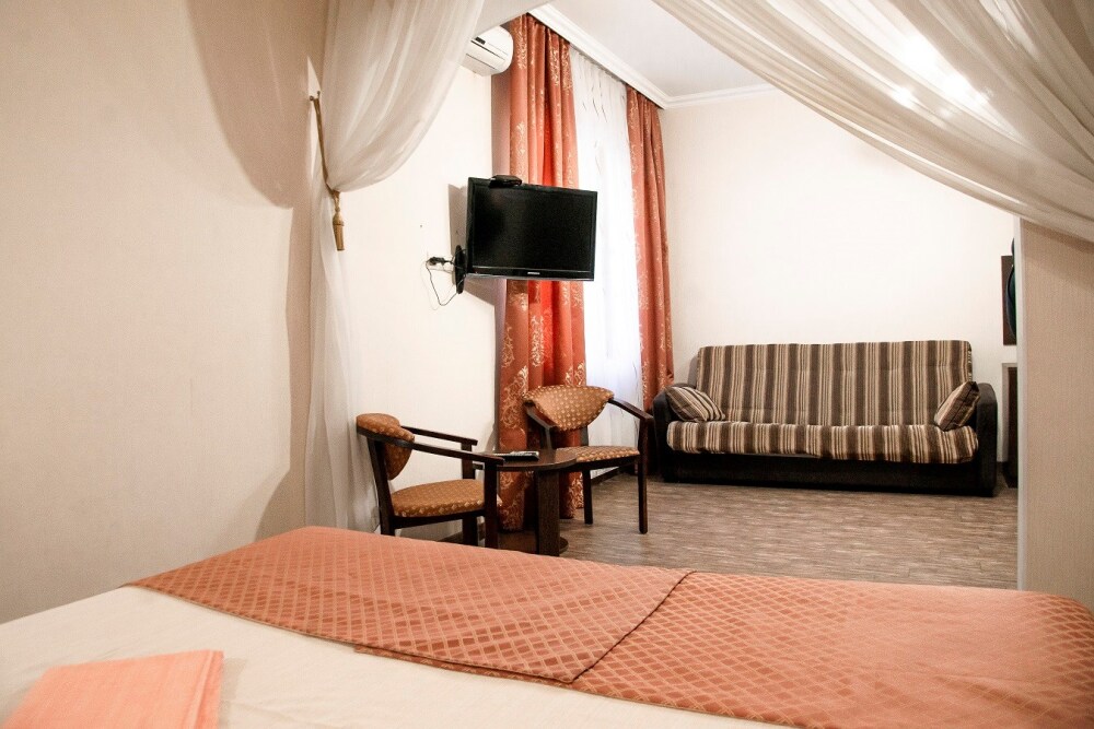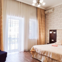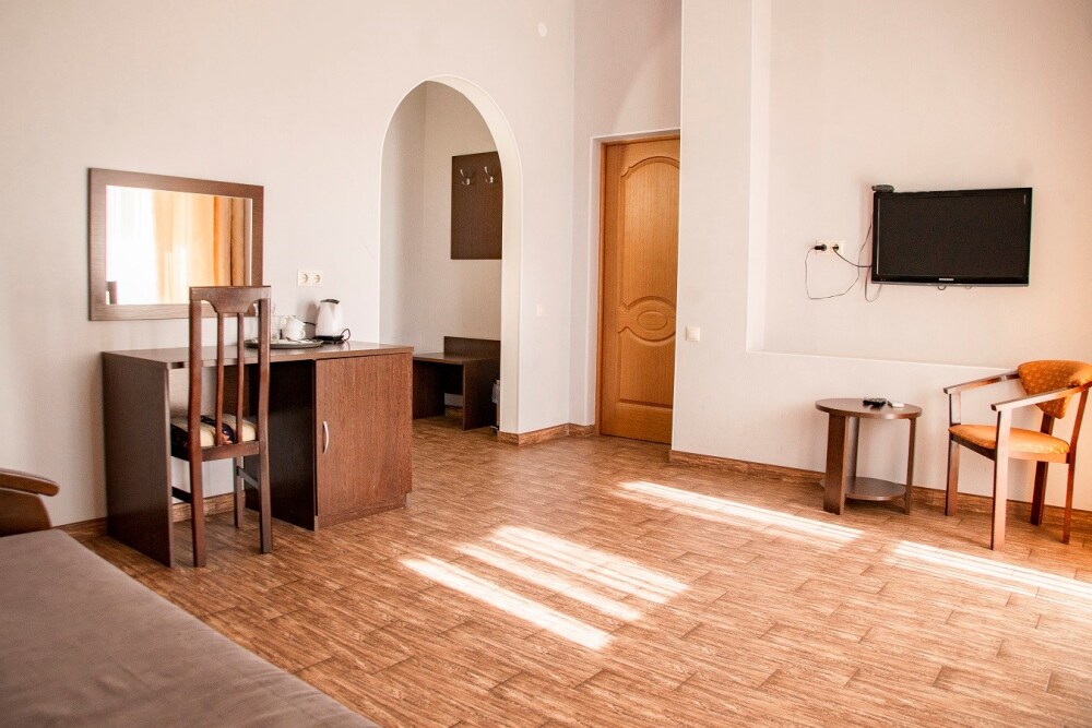 К услугам гостей 13 номеров категории «комфорт«с видом на горы или панорамным видом на Геленджикскую бухту. Во всех номерах есть холодильник, телевизор, чайник, письменный стол, собственная ванная комната. В некоторых номерах есть балкон.