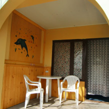 Номера расположены в 1-но этажном корпусе, имеют отдельный вход и террасу оборудованную летней мебелью с видом на розарий. В номерах необходимые удобства, мыльные принадлежности, полотенца, уборка санузлов ежедневная, номера - по запросу.