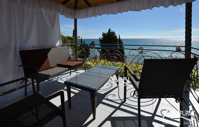 С открытой беседки коттеджа открывается шикарный вид на всю Гурзуфскую бухту