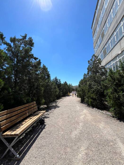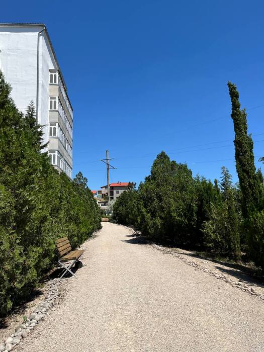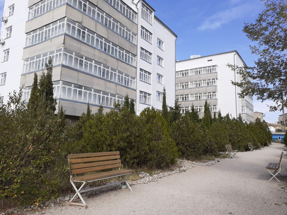 Здание Жилищного комплекса состоит из трех пятиэтажных корпусов располагающихся на собственной огороженной территории. Для удобства гостей, приезжающих в Крым на автомобиле, оборудована бесплатная автостоянка. Оснащена всем необходимым площадка для барбекю.