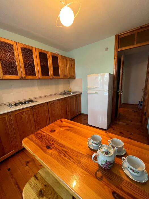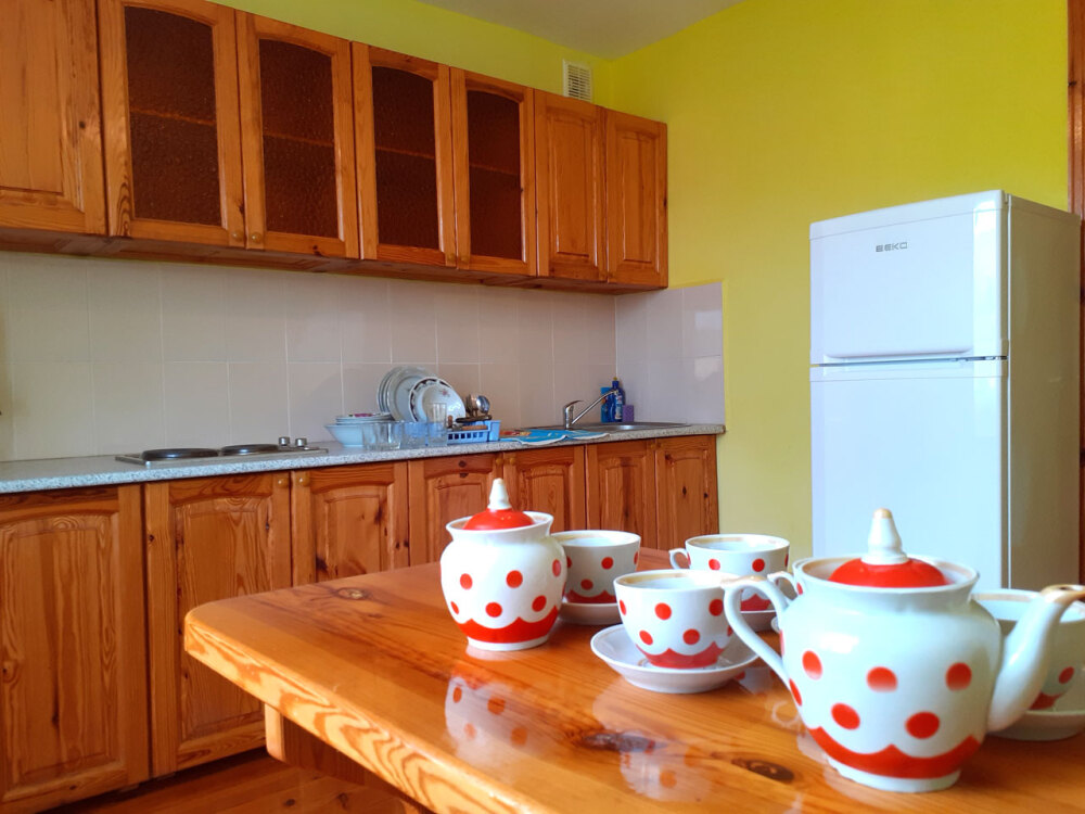 Каждый номер в нашем комплексе оснащен кухней со всем необходимым для приготовления пищи: электроплитой, столом, стульями, шкафом с посудой, столовой утварью и приборами.