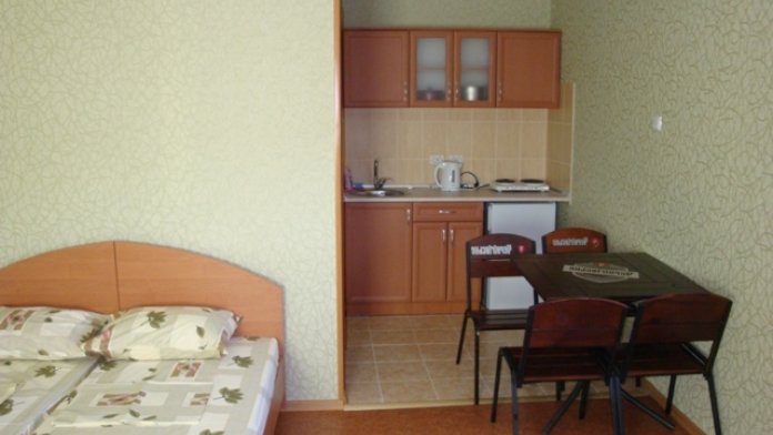 Вас ждут четыре 3-местных и один 4-местный номера. Все номера гостевого дома «Pirat» имеют всё необходимое для комфортного проживания: новая мебель, кондиционер, плоский телевизор. Номера оборудованы отдельным санузлом и собственной кухней (обеденный стол, холодильник, посуда, плита, чайник). Горячая и холодная вода подается круглосуточно.