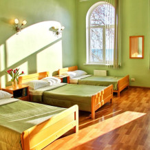 Просторный трехместный номер оборудована 3 раздельными односпальными или полутороспальными кроватями общей площадью 30м2. Дополнительное место - раскладной диван.
