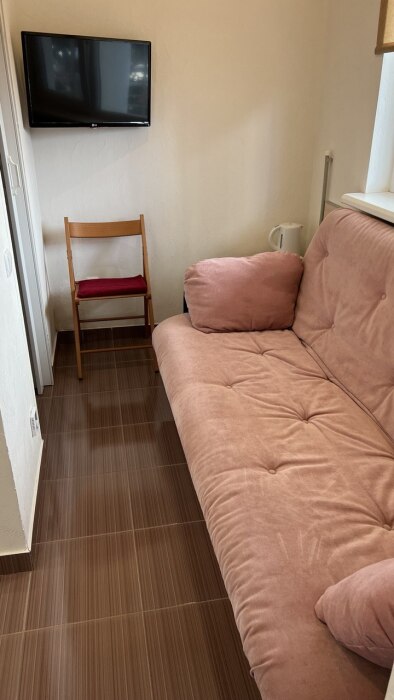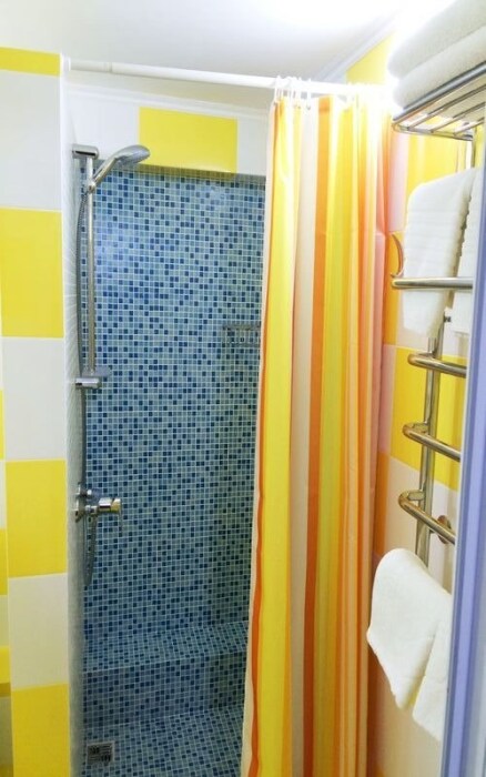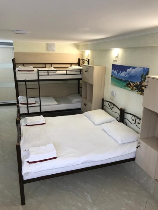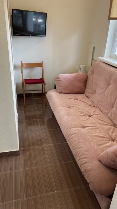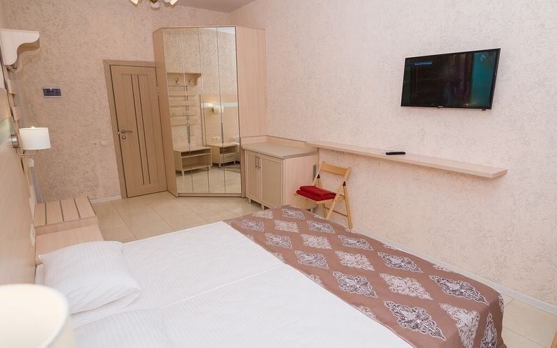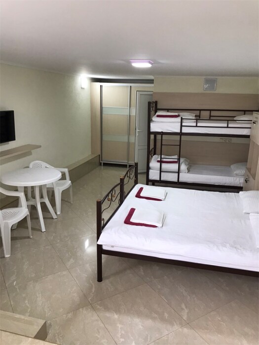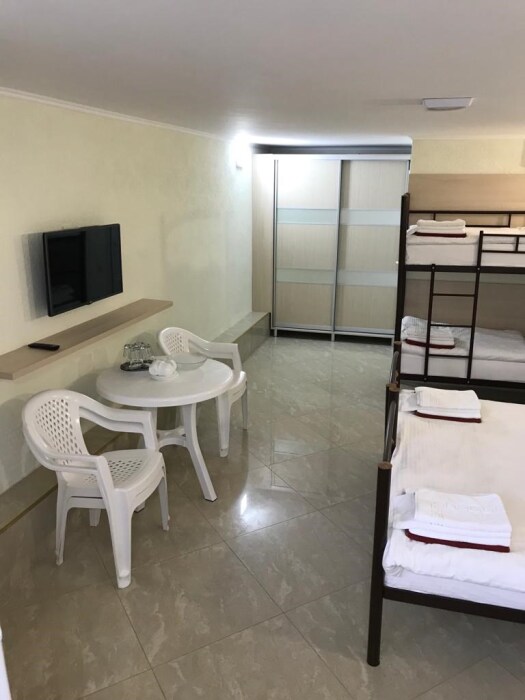 Номер оснащен 1 раскладным диваном (полуторный), шкаф, телевизор и собственный санузел.