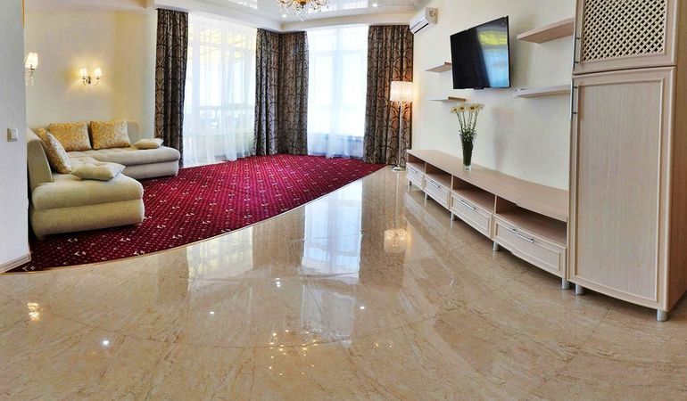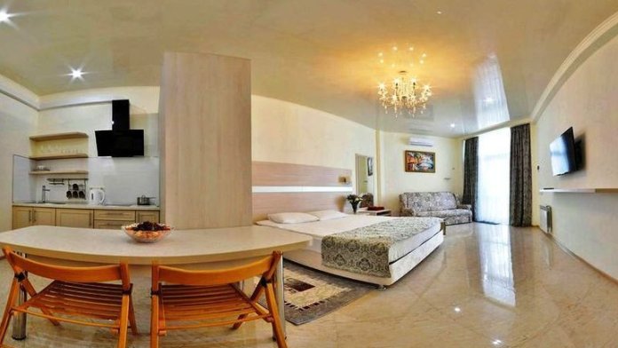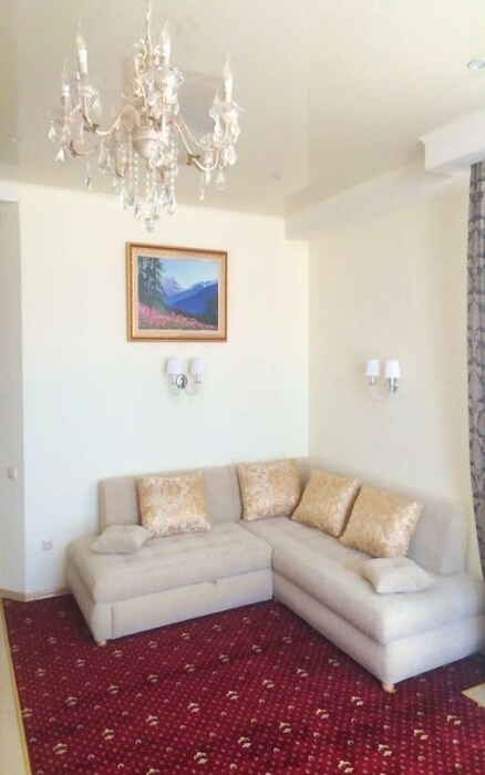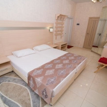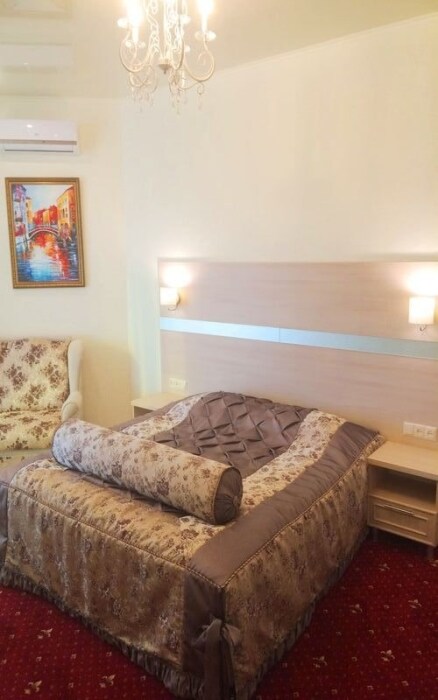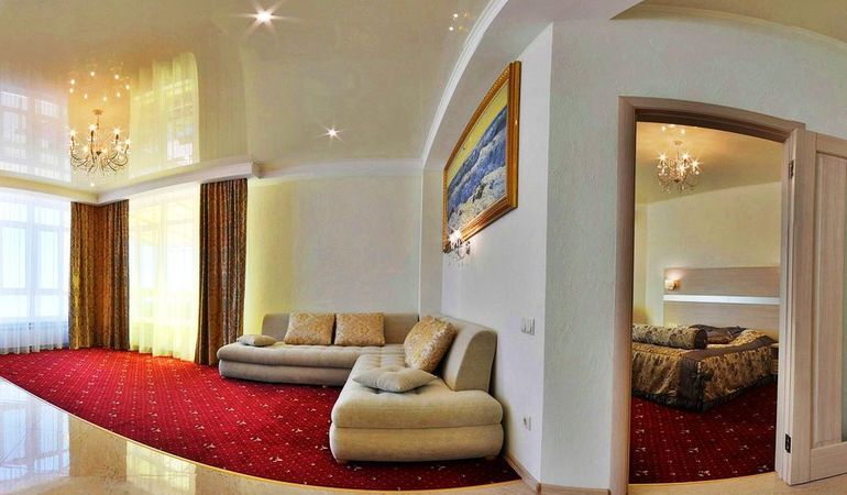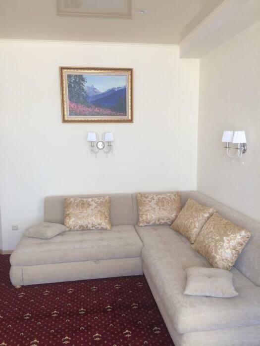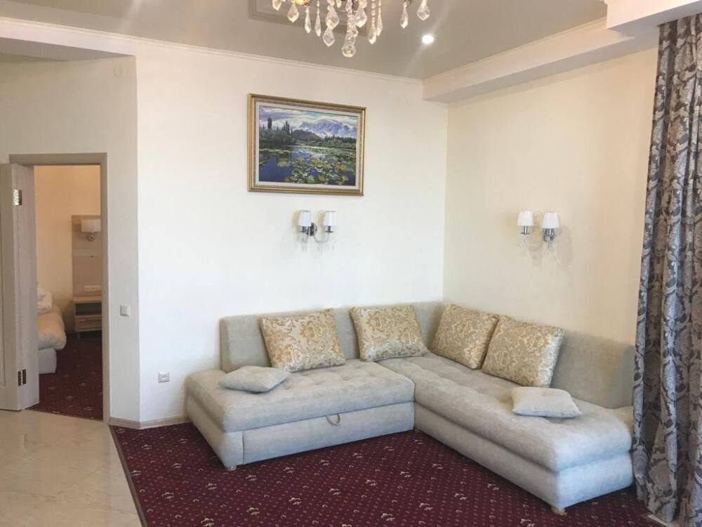 Номер состоит из спальни (двуспальная кровать и полуторный раскладной диван). Вторая комната это гостиная, с большим раскладным угловым диваном.