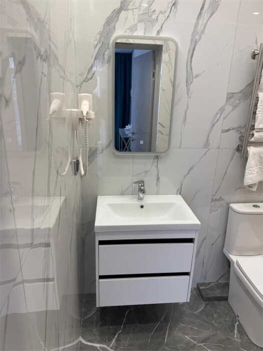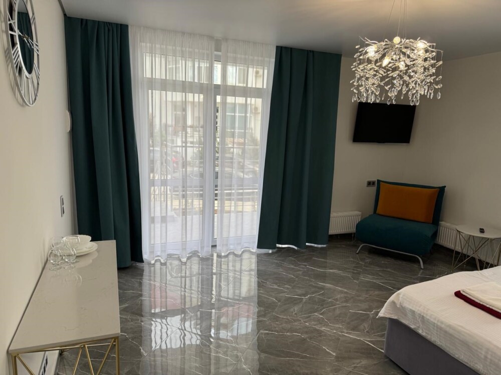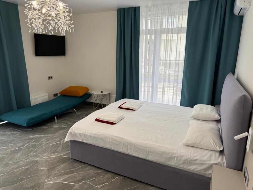 Новый номер Делюкс, 1 этаж, отдельный вход, кровать King Size + дополнительное спальное место (кресло-кровать), кондиционер и система климат-контроля (можно проживать зимой). В номере есть вай-фай и smart TV.