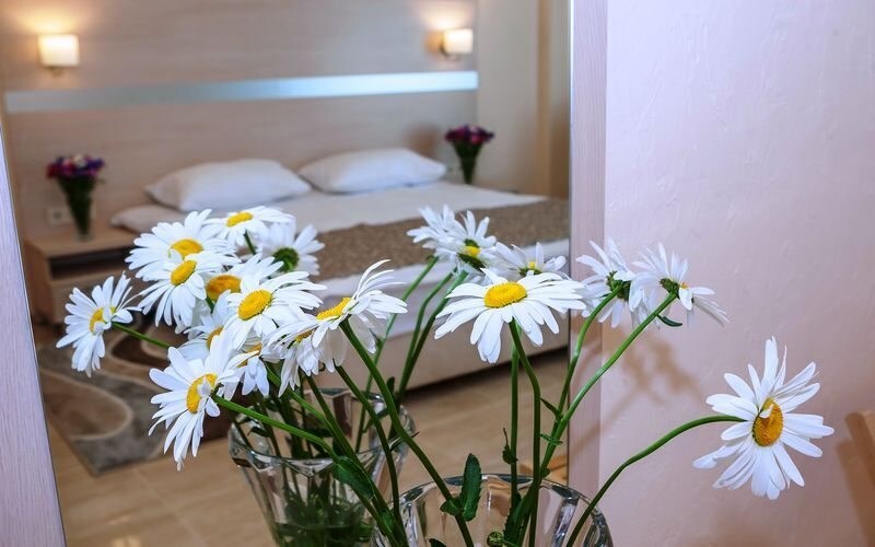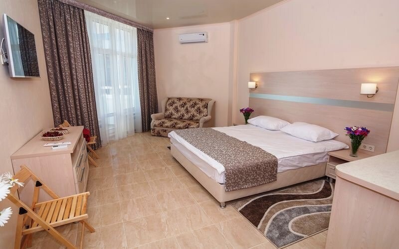 Номера расположены на 2-3 этажах. В номере есть балкон (комплектован мебелью и сушкой для белья), имеет частичный вид на море.