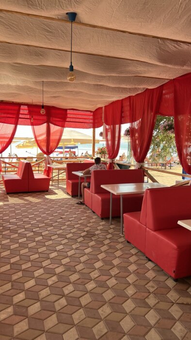 Отель предлагает свой песчаный пляж в шаговой доступности. Находясь в номере, можно смело выглянуть в окошко и выбрать себе комфортное место под горячим солнцем.