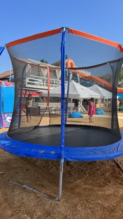 Рядом есть небольшая детская площадка и в 15 минутах ходьбы находится детский парк с батутами и веревочным парком.