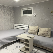 Домик-студия уютный, для не большой семьи. Санузел и кухня есть в домике. Оснащение всей необходимой техникой и посудой, wi-fi, беседка для отдыха. От набережной - 7 минут пешком.