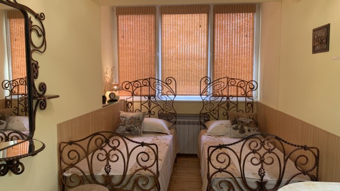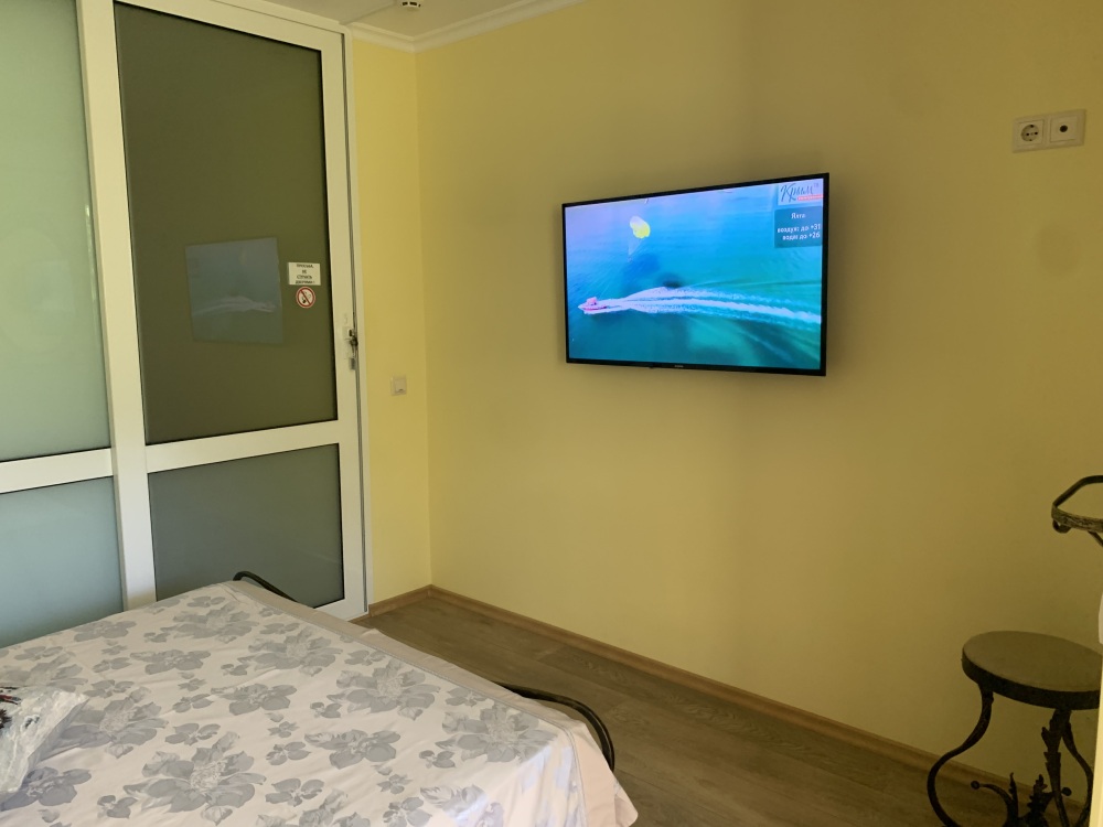 В комнате кондиционер,беспроводной WI-FI интернет,плазменный телевизор с USB разъёмом,двуспальная кровать,шкаф,индивидуальный сейф,прикроватные тумбочки,также в номере кухонная зона-холодильник,мультиварка с керамической чашей на 5 литров,электро чайник,микроволновка,необходимая кухонная и столовая посуда,мойка с подачей холодной и горячей водой. Раздельный санузел (находится рядом с комнатой, в общем холле.Удобства на две 2-х местные комнаты .