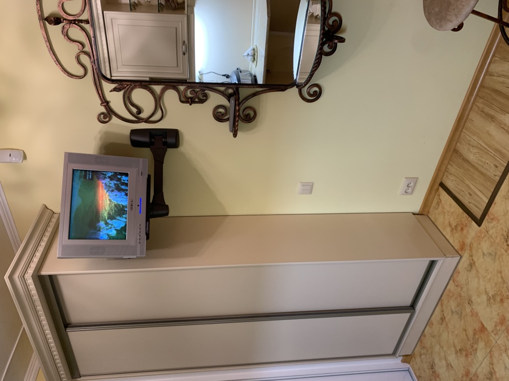 Оснащение комнаты:кондиционерами,спутниковым и кабельным ТВ,зоной WI-FI,кухонной зоной(холодильник,эл.чайник,мультиварка с керамической чашей на 5 литров,СВЧ,необходимая кухонная и столовая посуда).