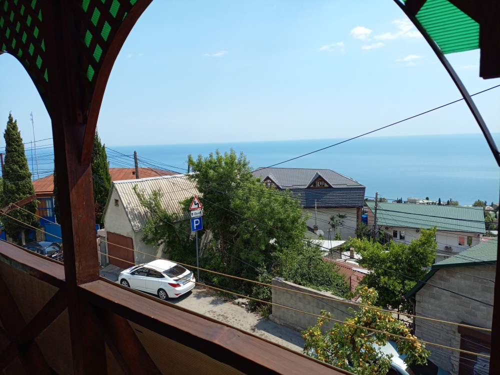 Второй этаж более видовой,из каждого номера вид на море и из номеров вид на горы и вершину Ай Петри. На втором этаже расположены четыре номера,два номера на два человека,номер семейный на четыре человека и есть двухкомнатный семейный номер на четыре человека. Все номера студии,есть кухонная зона,где гости могут самостоятельно приготовить. В каждом номере кондиционеры,цифровое телевидение.