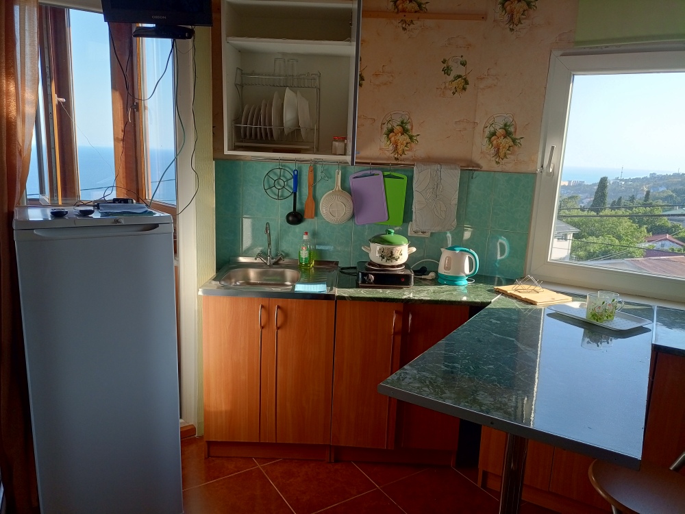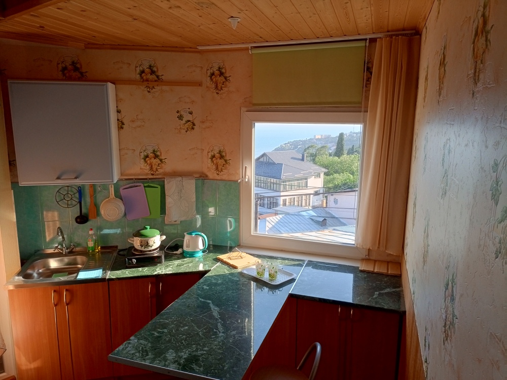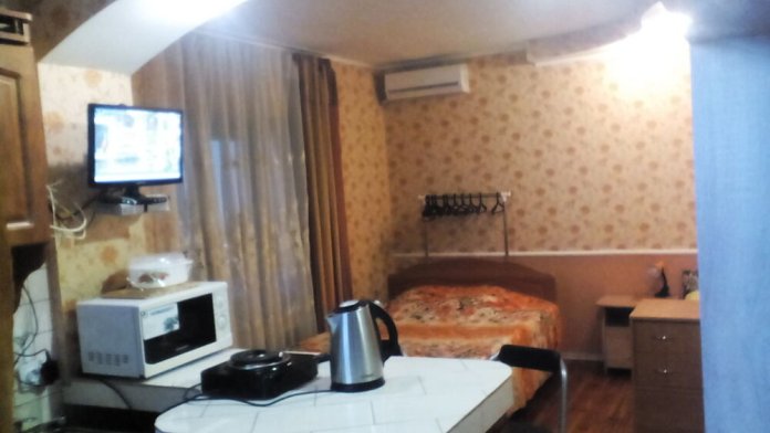 Уютный,солнечный,просторный,видовой номер на втором этаже частного двухэтажного дома. Номер студия,есть кухонная зона,своя посуда,бытовых электроприборы. Есть микроволновая печь в доступном месте при необходимости для пользования. Телевидение цифровое. Фен предоставляется по запросу гостя.