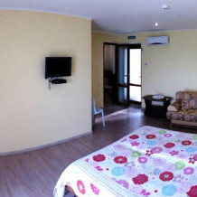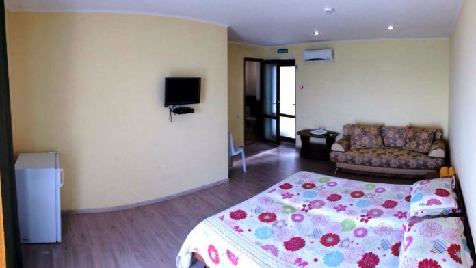 Номера клуба-отеля просторные, светлые, имеют приятный внешний вид и удобную качественную мебель: мягкие спальные места, телевизор, холодильник, оснащены кондиционером. Приятным дополнением являются балконы, с которых открывается чудесный вид на Чёрное море, побережье или панораму посёлка.