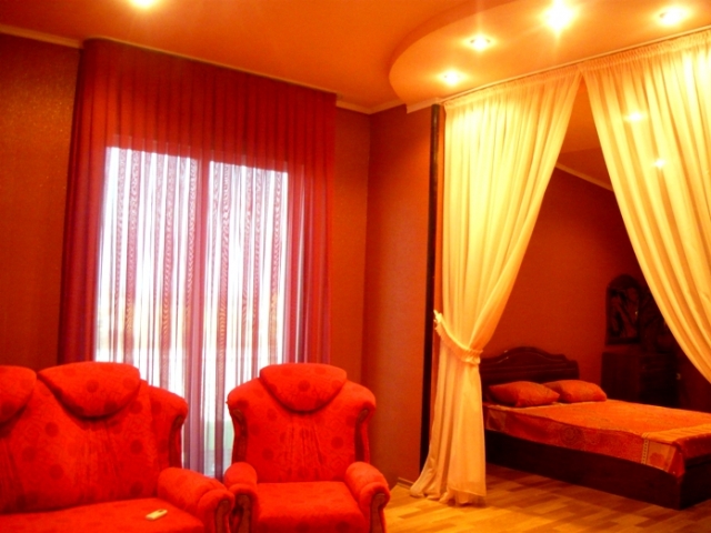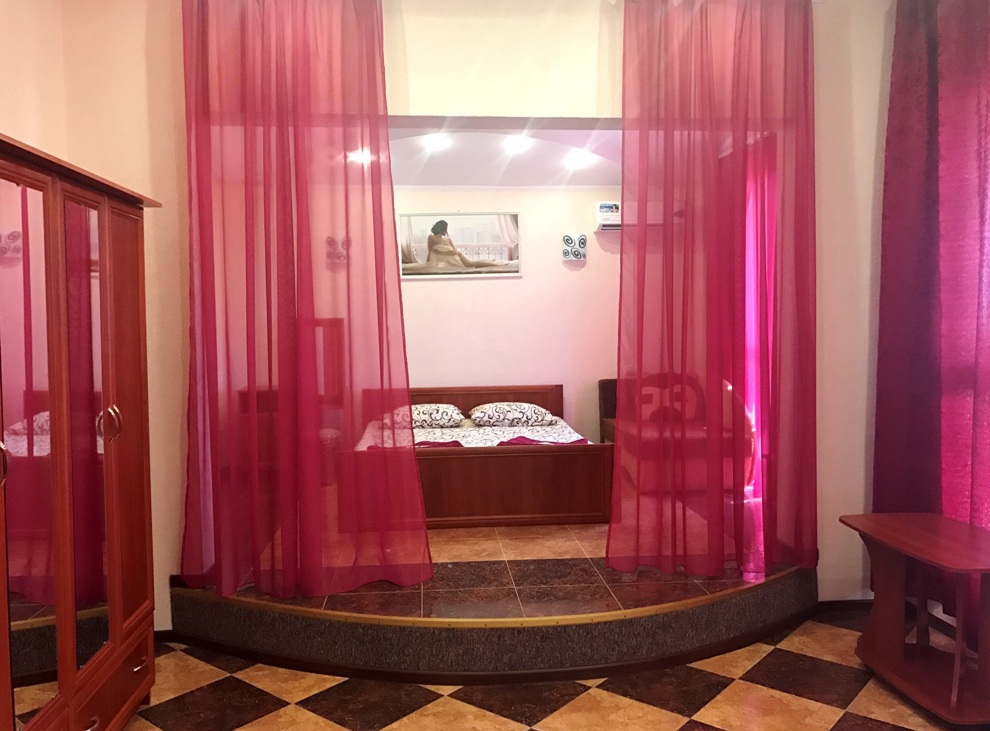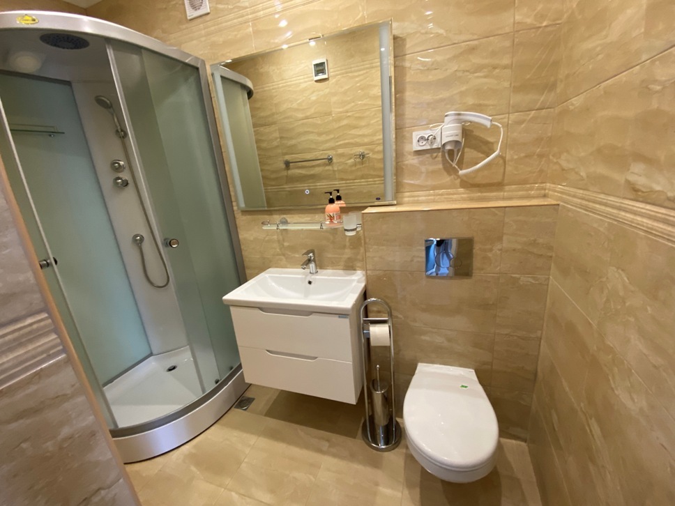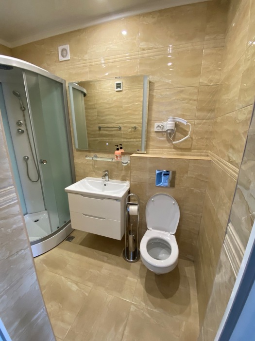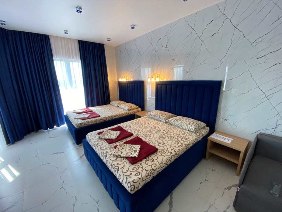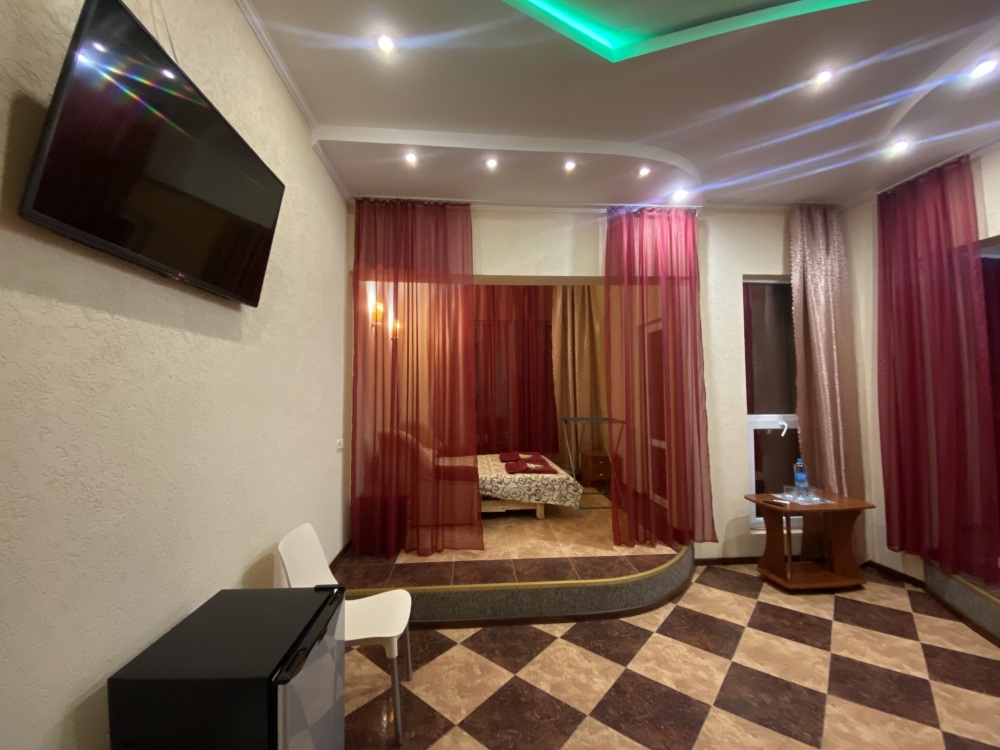 В номере все удобства: кондиционер, душевая кабина, туалет, умывальник, холодильник, плазменный телевизор, Wi-Fi, горячая и холодная вода - круглосуточно; вся необходимая мебель: двуспальная кровать, шкаф с зеркалом, прикроватные тумбочки, туалетный столик, комод, стулья.