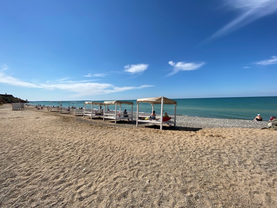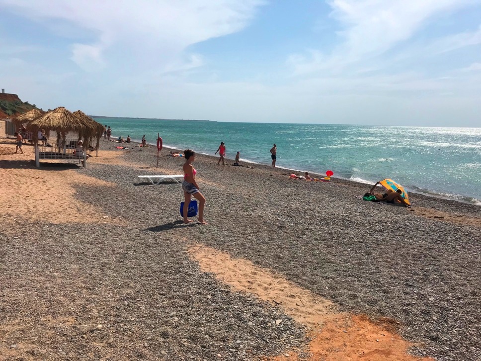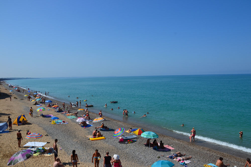 Пляж - чистый, бесплатный, песчано-галечный, просторная береговая линия, аттракционы стандартные: скутера, бананы, катамараны, кафе.