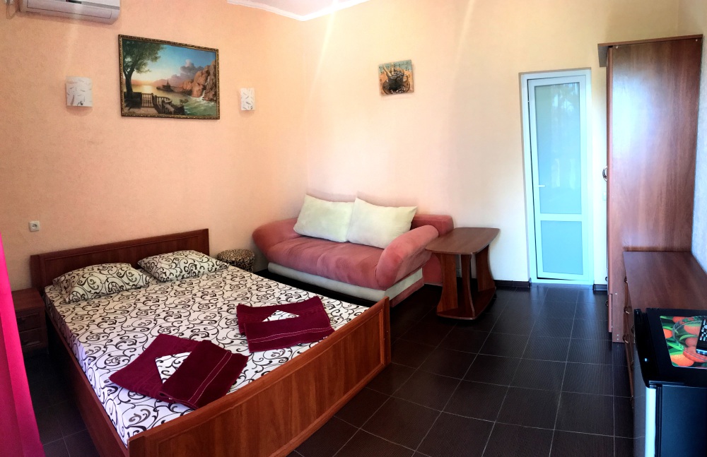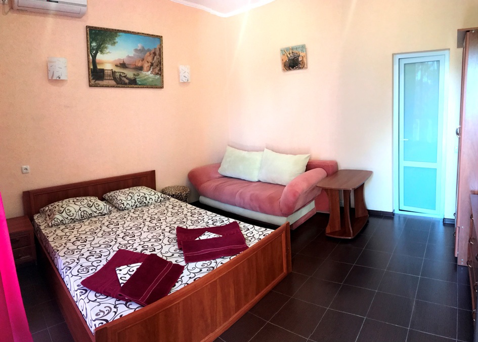 Номера категории Стандарт - расположены в новом двухэтажном здании, рядом с корпусом имеются уютные беседки для отдыха, бассейн, качели, много зелени (розы, сосны, кипарисы).