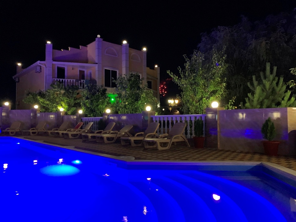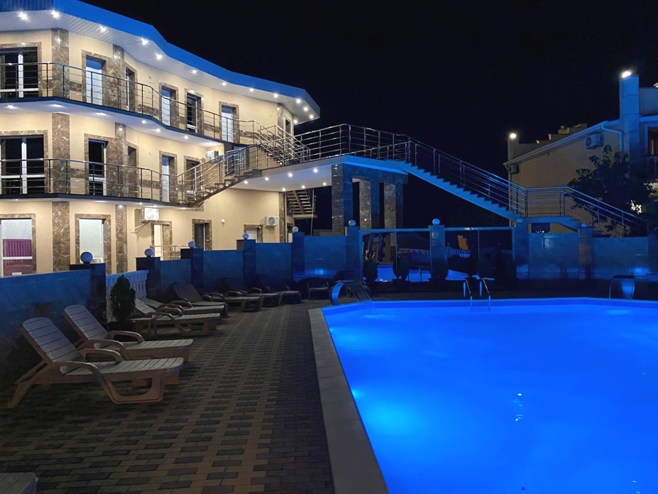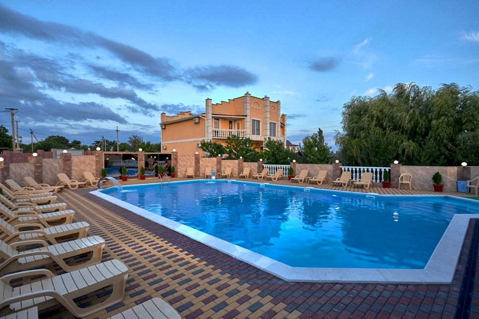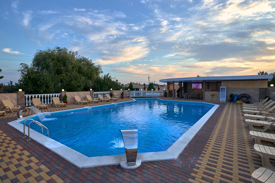К услугам гостей: плавательный бассейн для взрослых, детский бассейн, детская площадка, уютные беседки для отдыха, фонтаны, шашлычная, бильярд, бесплатная автостоянка.