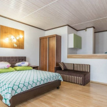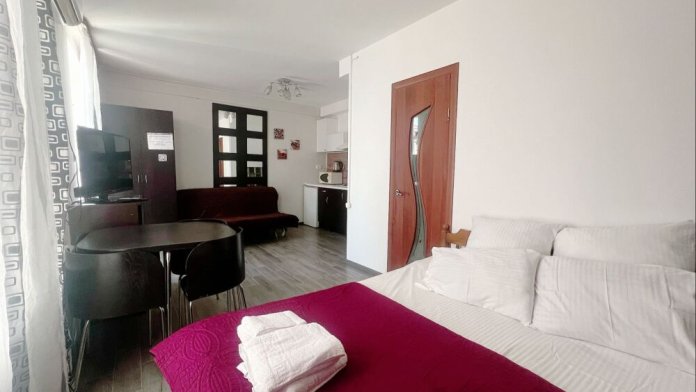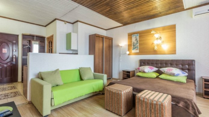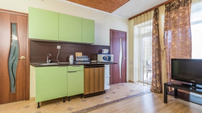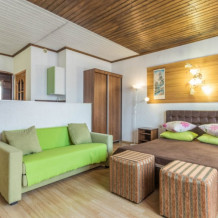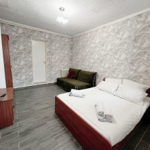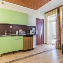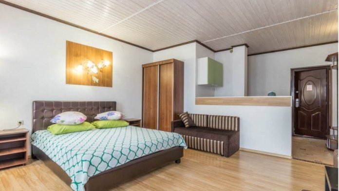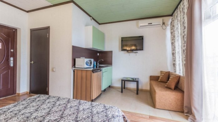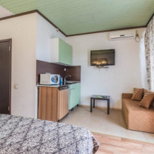 Здесь для Вас предоставляются квартиры «Studio», а также комфортабельные двухкомнатные, которые удобны для длительного пребывания как одинокому человеку, так и целой семье. Каждый номер оснащен мини-кухней оборудованной всем необходимым, плоским телевизором, сплит-системой, а также спутниковым телевидением.