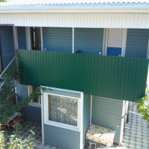 2-х этажный дом со всеми удобствами рассчитан для размещения от одного до семи человек. На второй этаж можно подняться как по внутренней лестнице, так и по уличной. В доме 2 отдельные комнаты — в каждой комнате телевизор, кондиционер и балкон. На первом этаже кухня-столовая, новый холодильник, новая микроволновка, душ, туалет, стиральная машина-автомат. Во дворе мангал и зона отдыха.