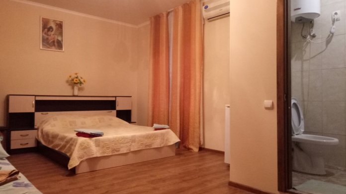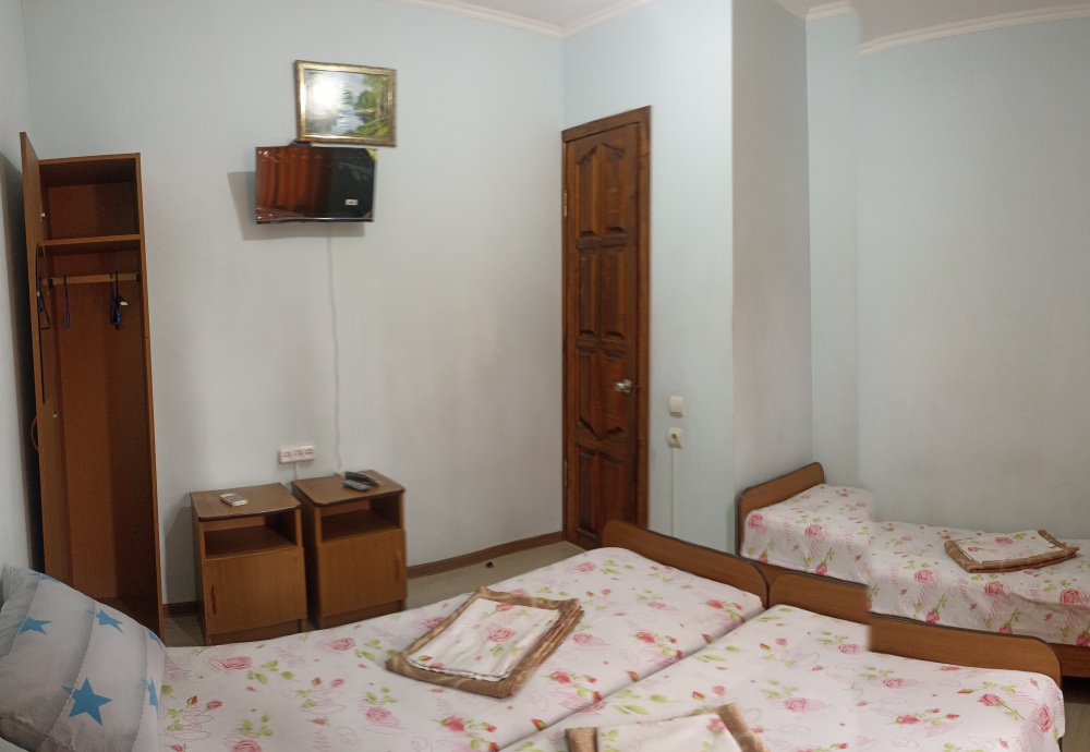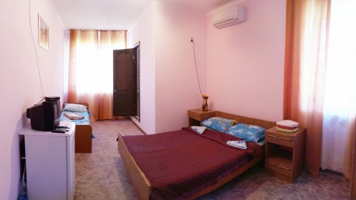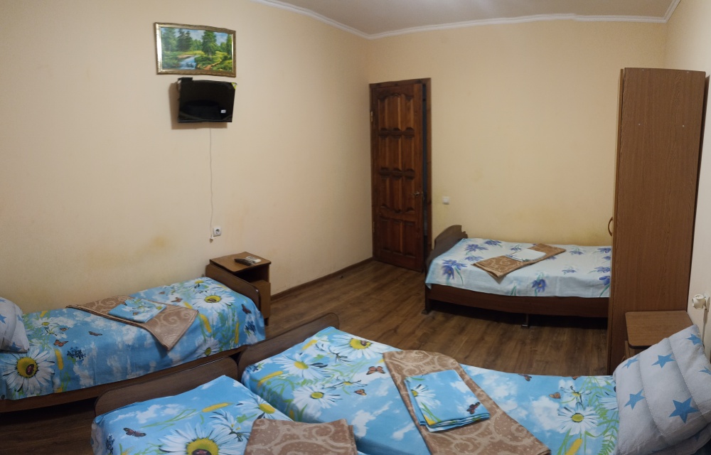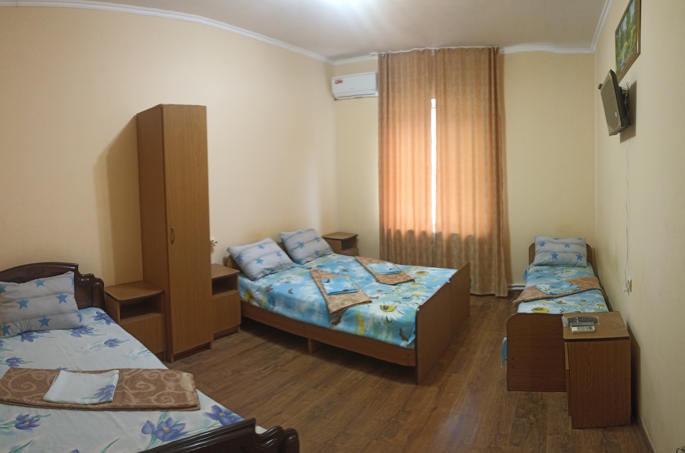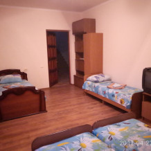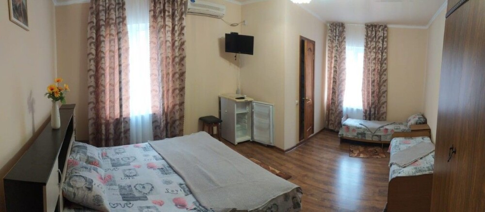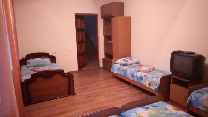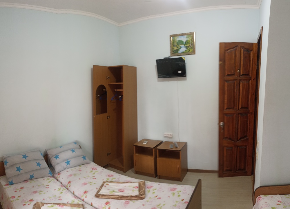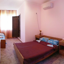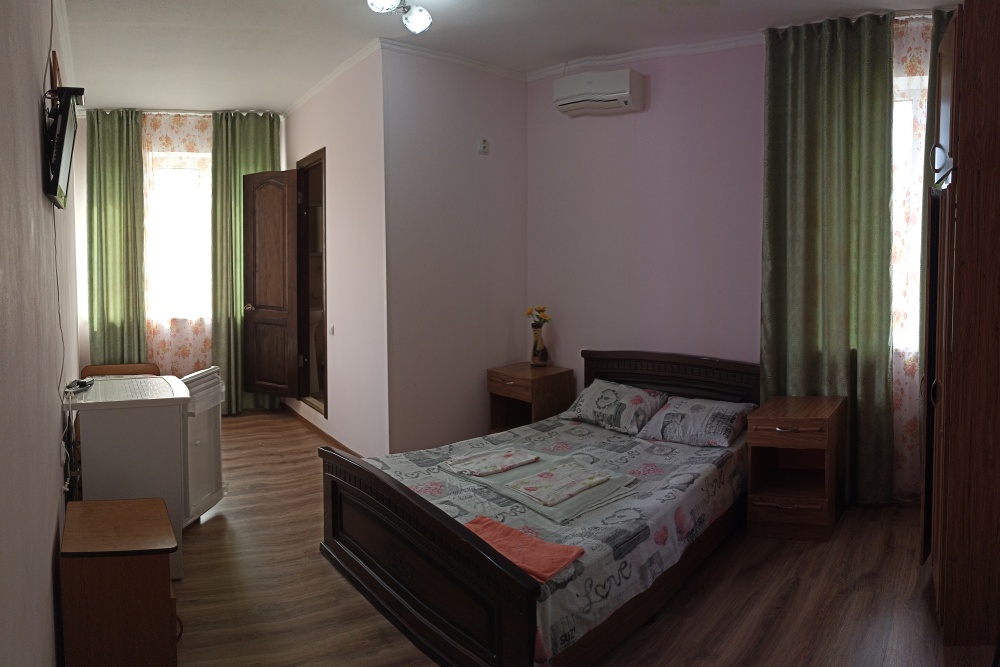 Двухэтажный гостевой дом представляет собой 12 комфортабельных номеров категорий «Эконом» и «Стандарт».Все номера с удобствами: удобная мебель, телевизор, кондиционер и санузел. В вашем распоряжении кухня-столовая со всем оборудованием и мангал для самостоятельного приготовления шашлыка. Во дворе имеются три беседки для отдыха на чистом воздухе, атмосфера тишины и спокойствия поможет вам расслабиться и отвлечься от повседневных забот.