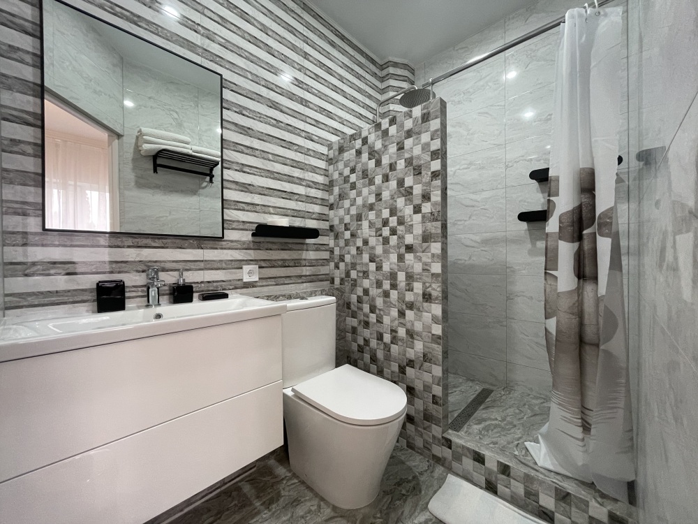 В номере все удобства: душ, туалет, холодильник, кондиционер, телевизор, чайник.