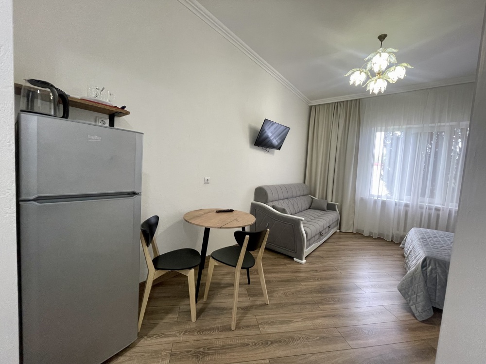 Апартаменты, кухня-гостиная и спальня.
