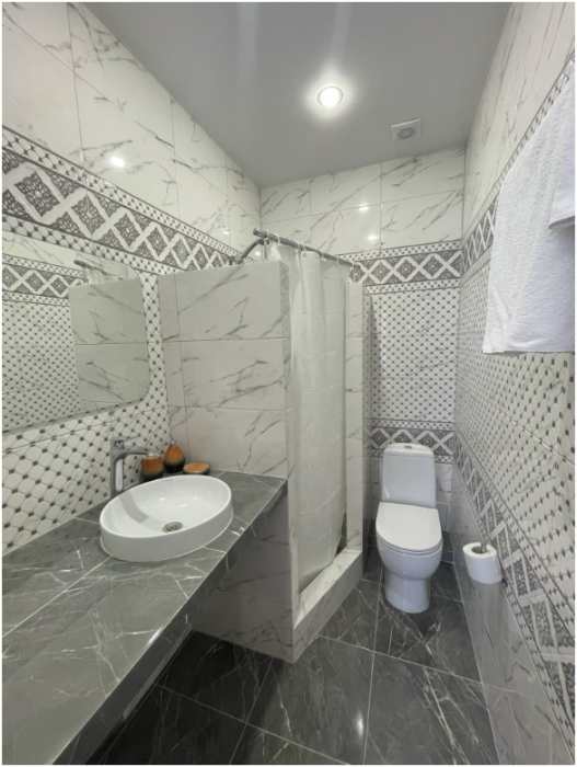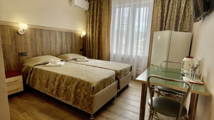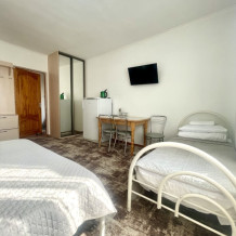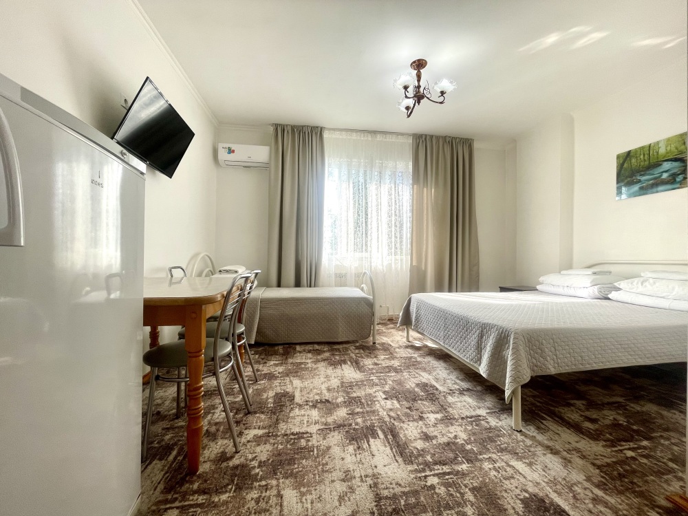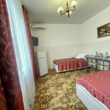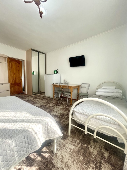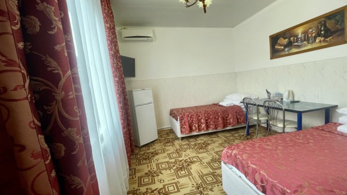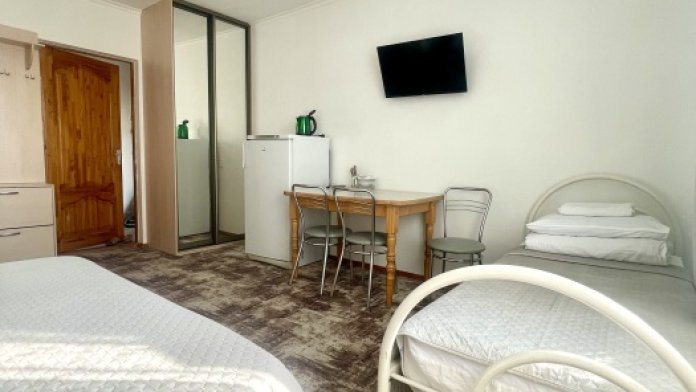 Все номера со всеми удобствами, холодильниками, кондиционерами, набором посуды, чайниками. В каждом номере отдельный сан-узел. Холодная и горячая вода круглосуточно.
