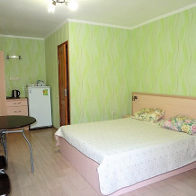 На территории базы 2 современных корпуса с номерами «Люкс» и «Полулюкс», а так же деревянные домики с номерами «Эконом» класса. В каждом номере есть все необходимое для комфортного отдыха.