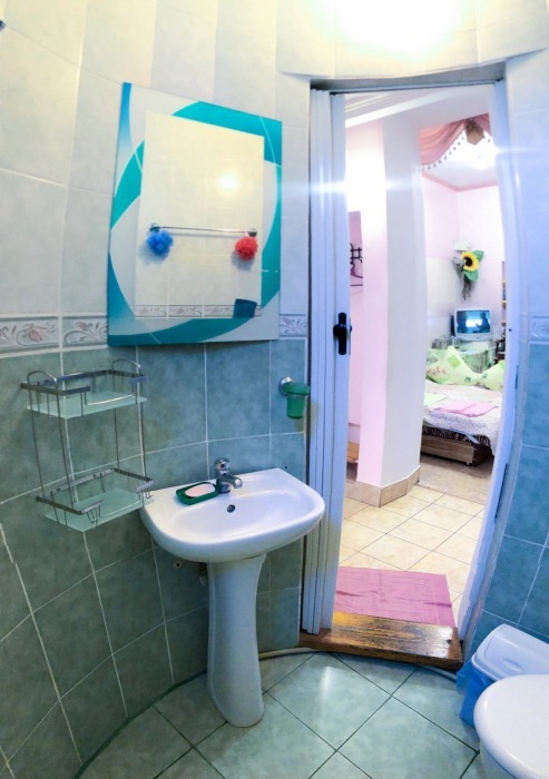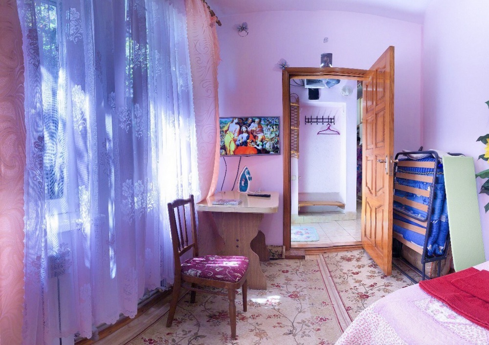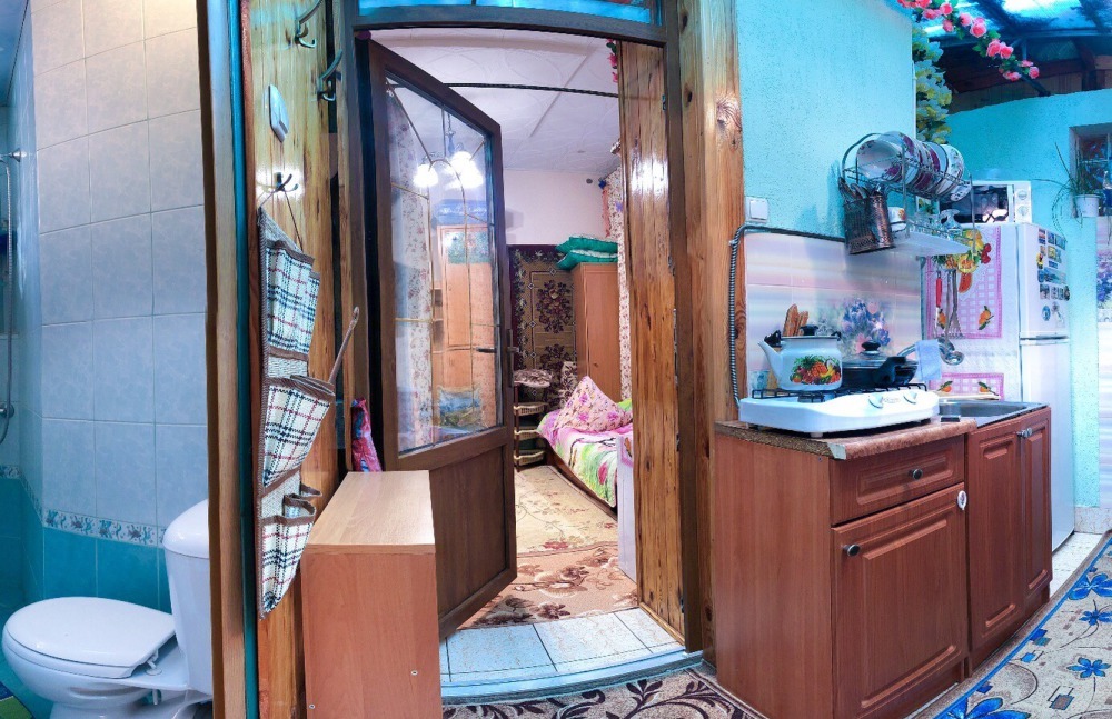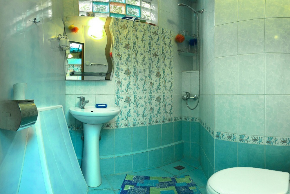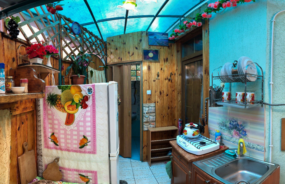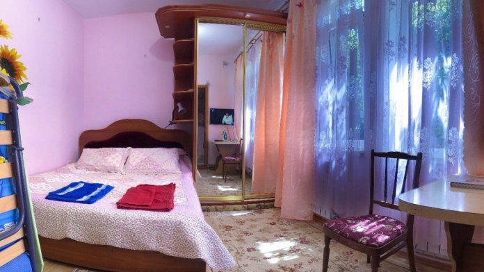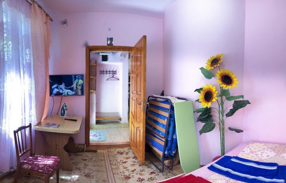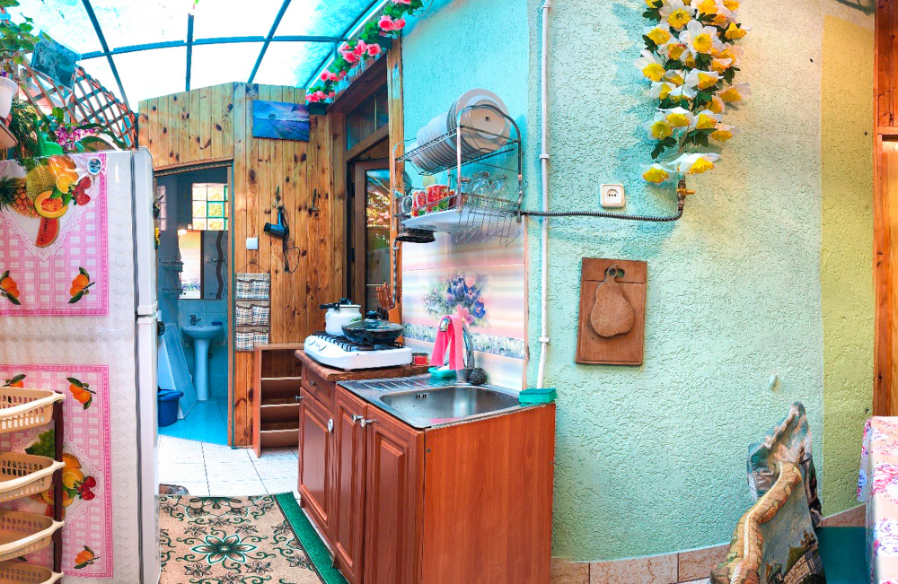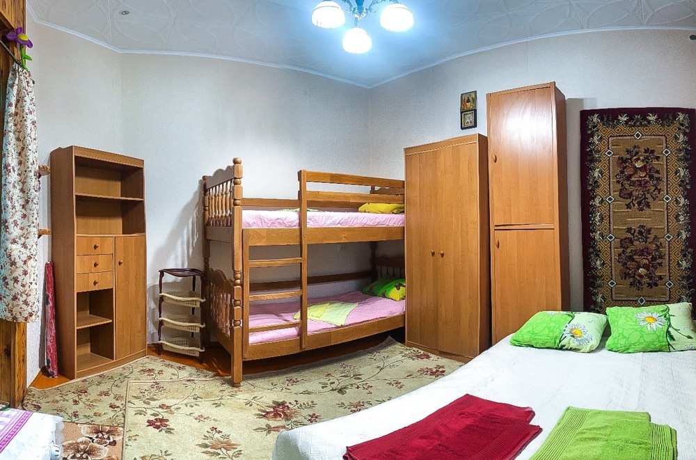 В номере 2-спальный диван и двухъярусная кровать шириной 90 см. Все удобства: WI-FI, кондиционер, санузел, банные принадлежности,. Летняя кухня со всем необходимым, микроволновая печь. Еесть возможность пользования мангалом.