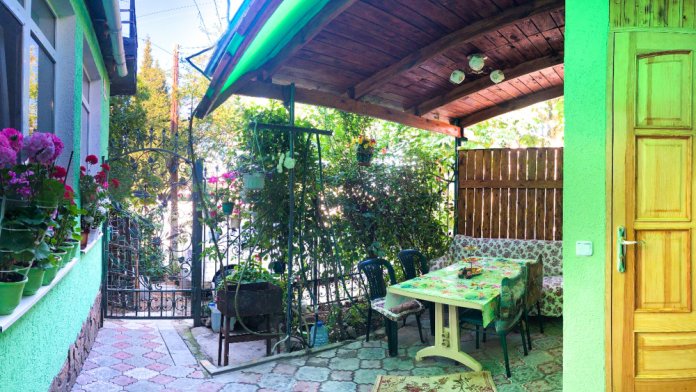 Частный сектор «Зеленый дворик у Алевтины» в тихом месте. Удобное расположение между морем и автовокзалом: 5 минут до автовокзала, до моря - 10-15 минут (900 м), в 200 м - Алуштинский военный санаторий. Рядом расположены: рынок с широким выбором свежих продуктов, супермаркет, фирменный магазин «Массандра», множество кафе и ресторанов. Прогулка до дельфинария «Акварель» занимает 10 минут, до крепости Алустон - 15 минут, до Приморского парка - 20 минут.